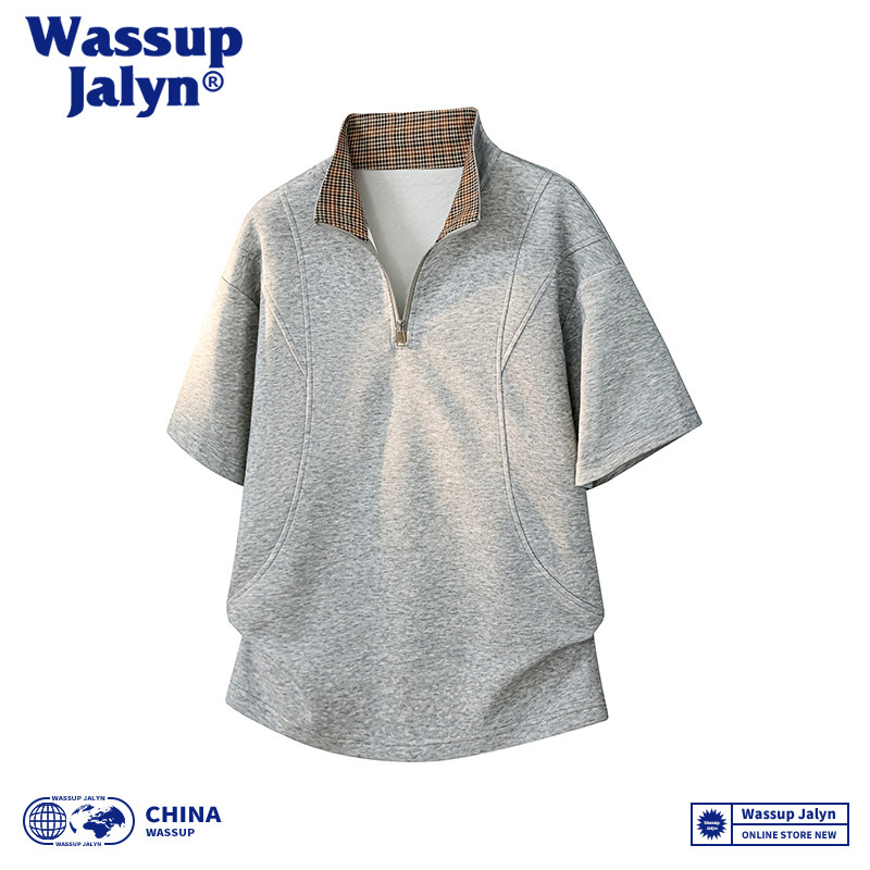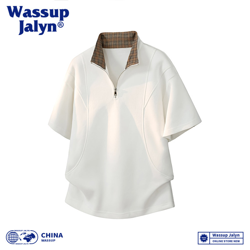 --------------------- WASSUP JALYN半拉链短袖男春夏季美式痞帅正肩T恤立领五分半截袖 【原售价】58.7元 【现售价】49.9元 【推荐理由】