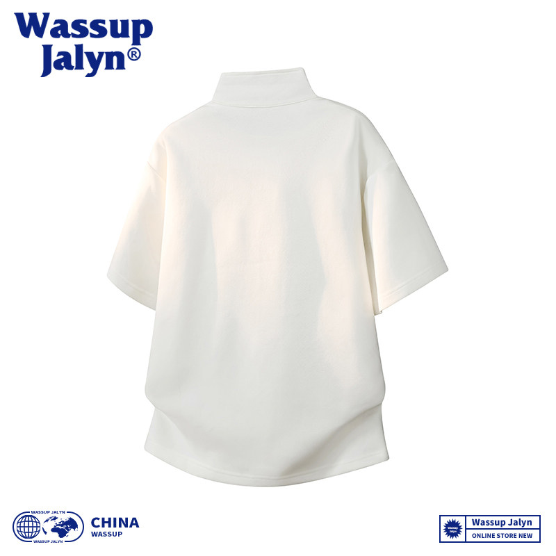 WASSUP JALYN半拉链短袖男春夏季美式痞帅正肩T恤立领五分半截袖