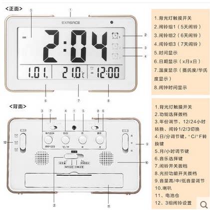 淘宝逸品博洋音乐闹钟高精度温度计学生电子闹铃自动感光EC-C3尊贵版
