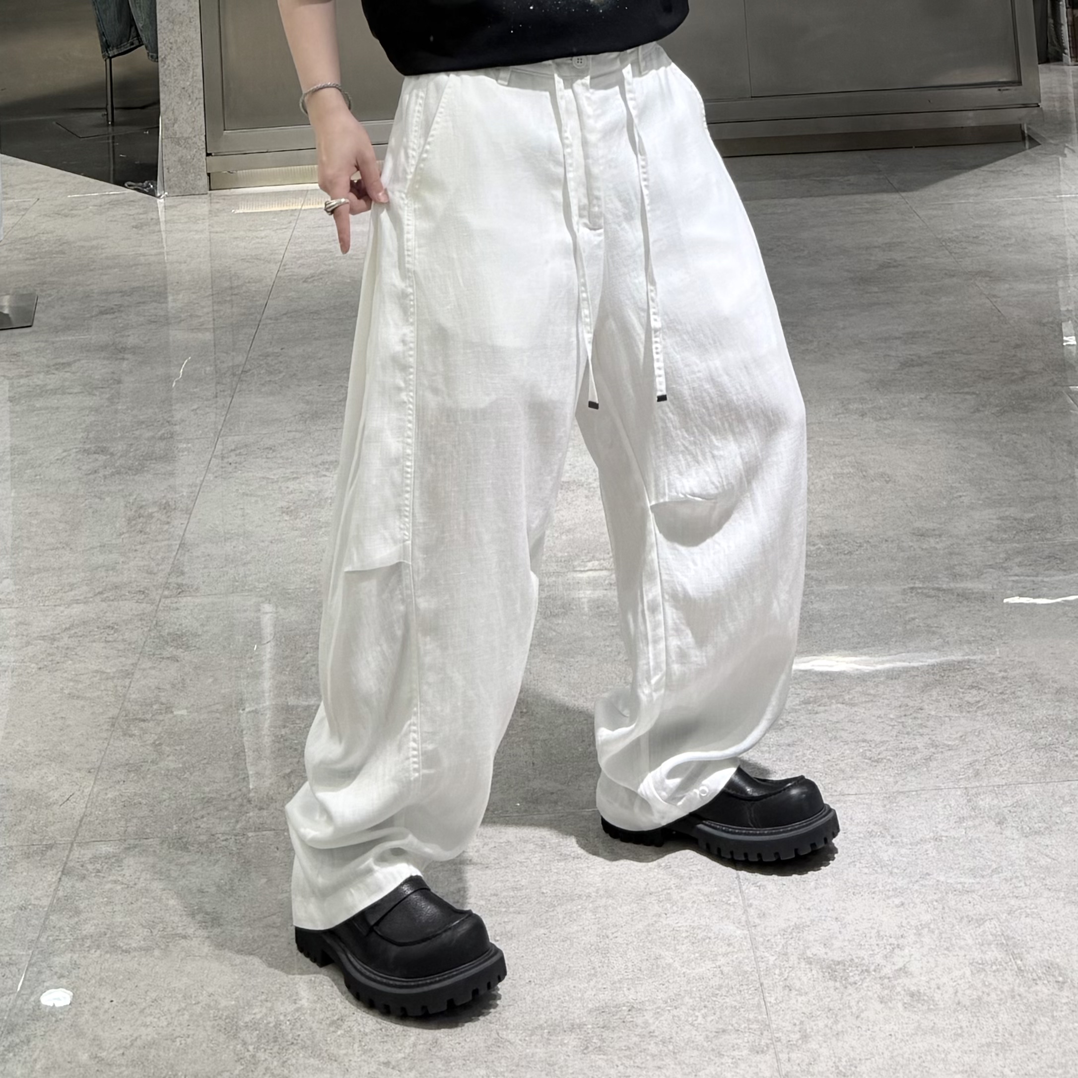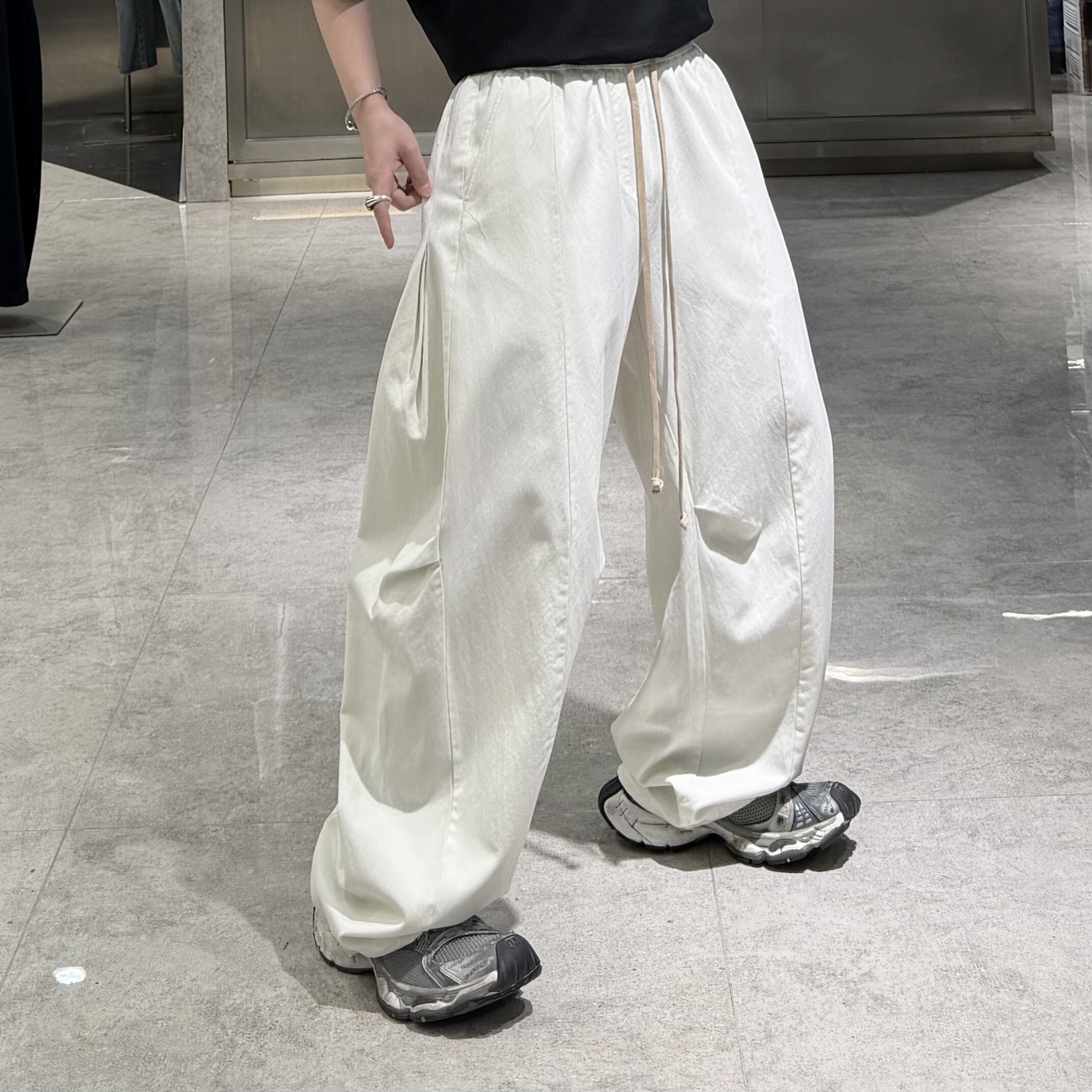 淘宝潮牌26春季直筒休闲裤男ins韩版纯色结构宽松青年帅气阔腿弯刀裤