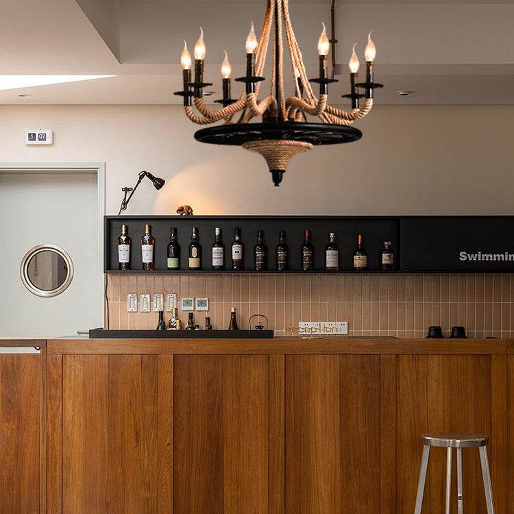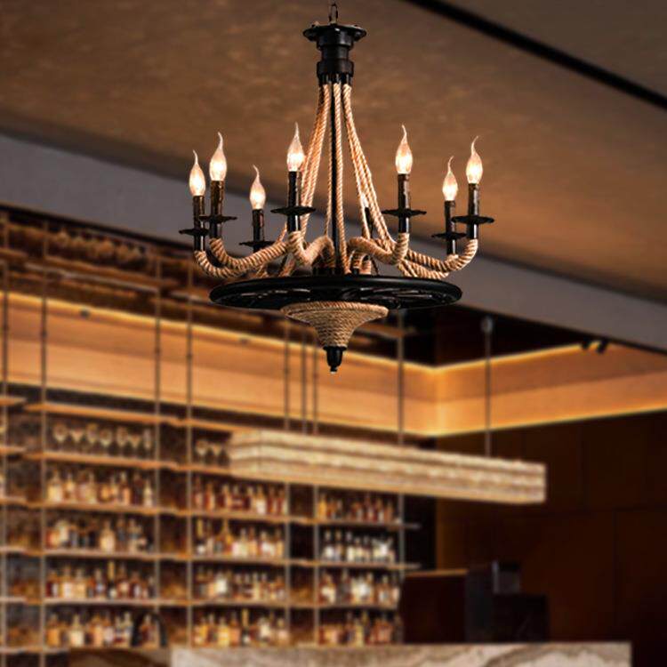 跨境美式复工业风古麻绳吊灯商用复古酒吧装饰灯具个性中山灯具