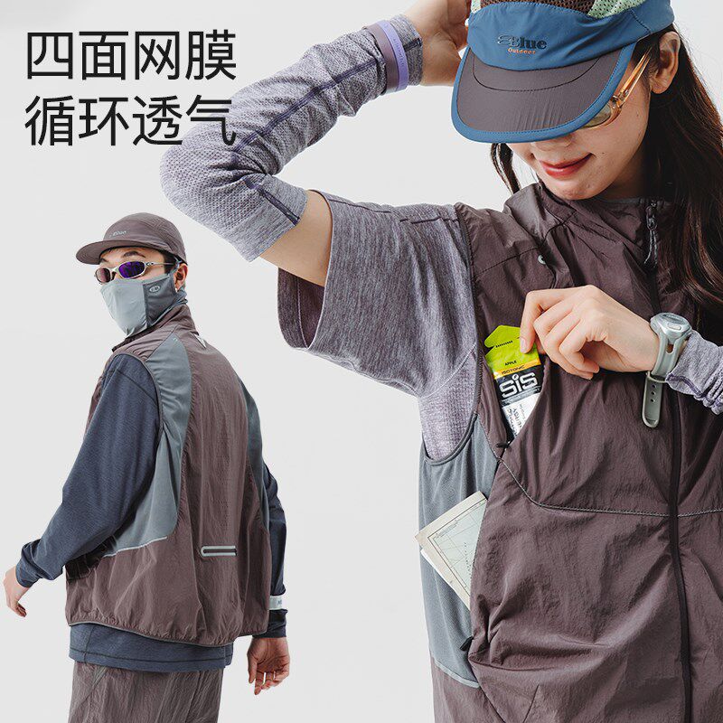 速发otBLUE蓝岐防泼水男坎骑行反光工装外肩户夏季运动立领马甲