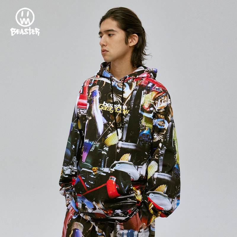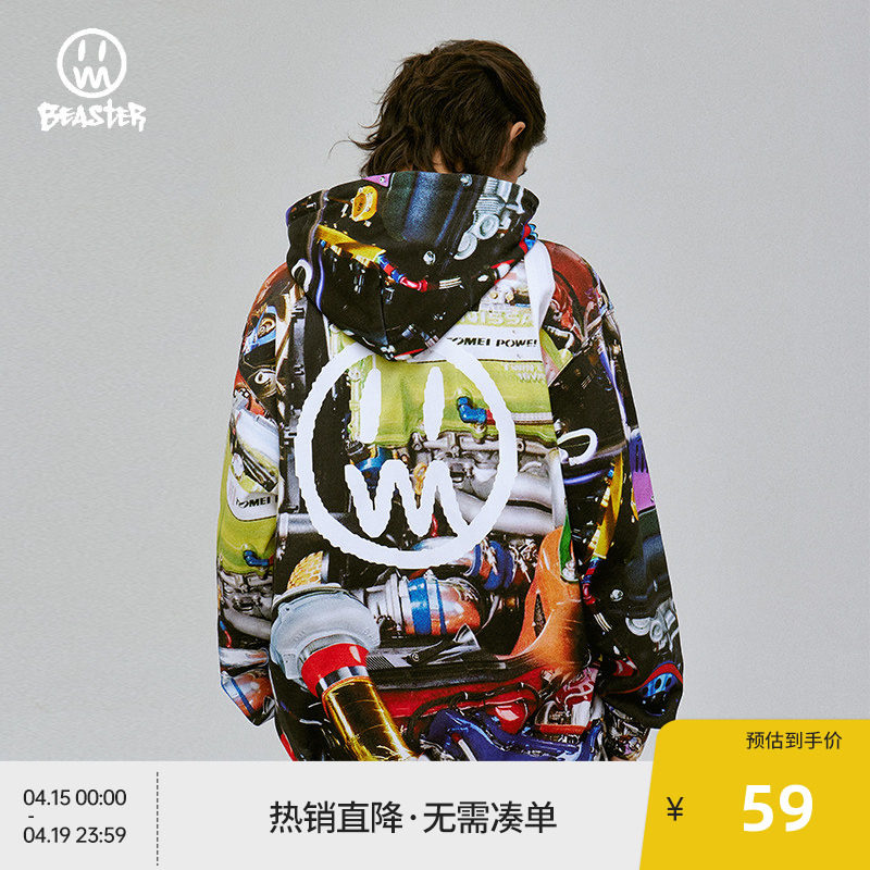 --------------------- BEASTER奥莱鬼脸满印情侣卫衣男秋季重磅国潮无性别男装 【原售价】449元 【现售价】59元 【推荐理由】