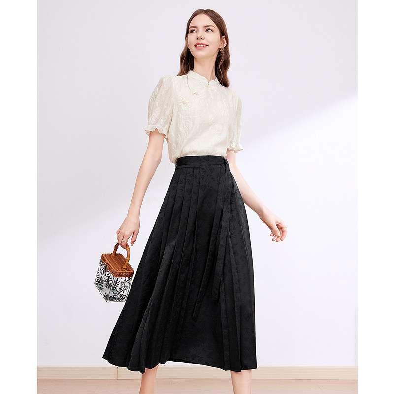 betu百图改良版提花马面裙春夏中式国潮压褶半身裙中长裙