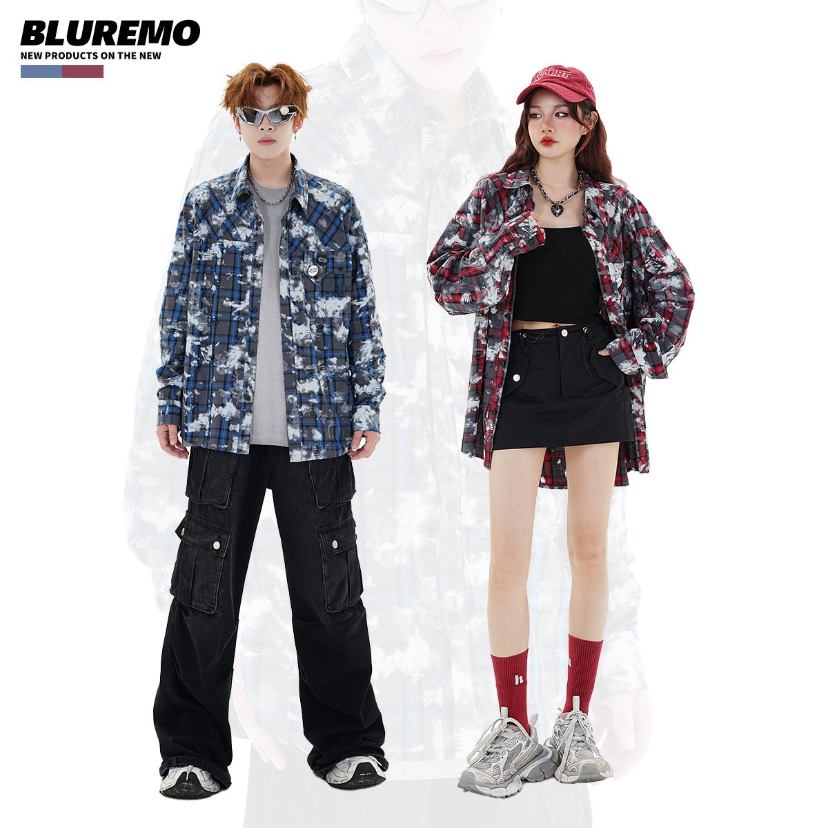 淘宝BLUREMO/模糊情绪2026春季新款小众设计肌理格纹贴袋休闲长袖衬衫