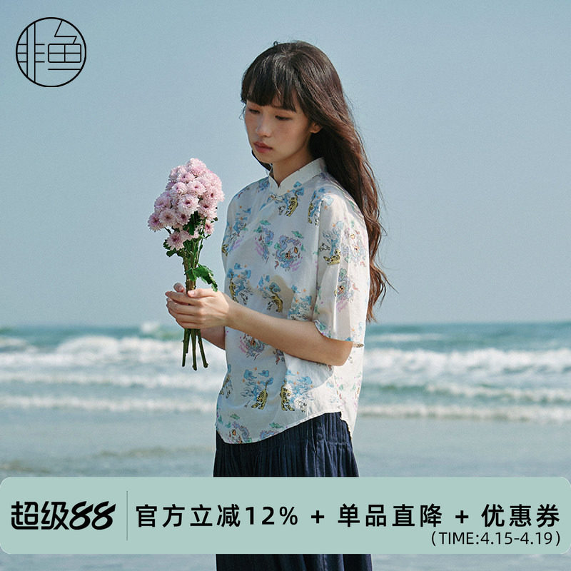 --------------------- 非鱼25春季新款文艺国潮印花改良旗袍领五分袖衬衫女中国风上衣 --------------------- --------------------- 【原价】898元 【券后价】208元