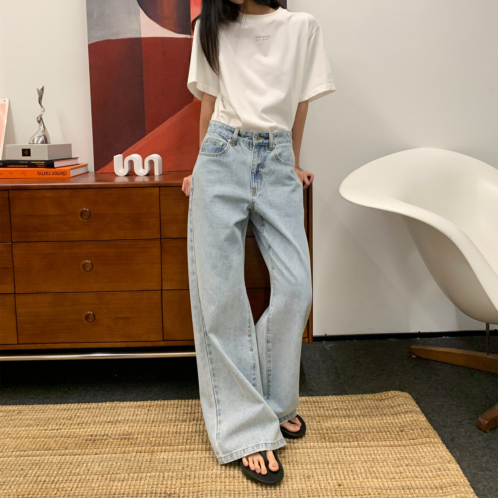 roaringwild a arch 咆哮野兽 水洗国潮阔腿裤宽松女直筒牛仔长裤