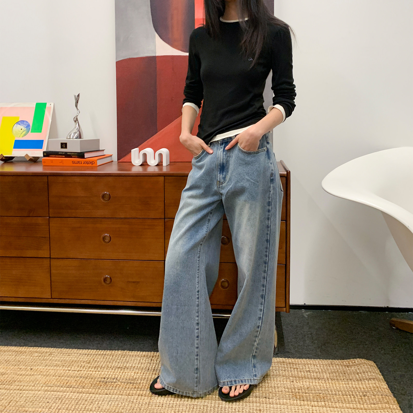 --------------------- roaringwild a arch 咆哮野兽 水洗国潮阔腿裤宽松女直筒牛仔长裤 【原售价】519元 【现售价】315元 【推荐理由】