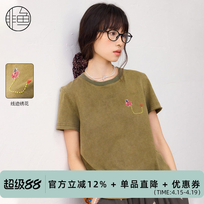 淘宝非鱼25夏季时尚休闲女装T恤短袖套头百搭上衣刺绣新款文艺减龄