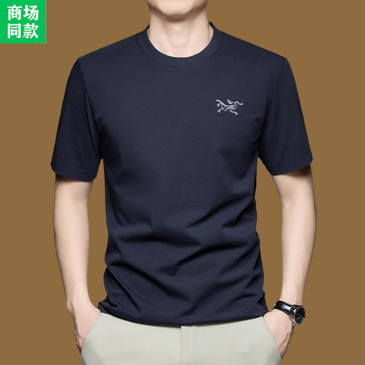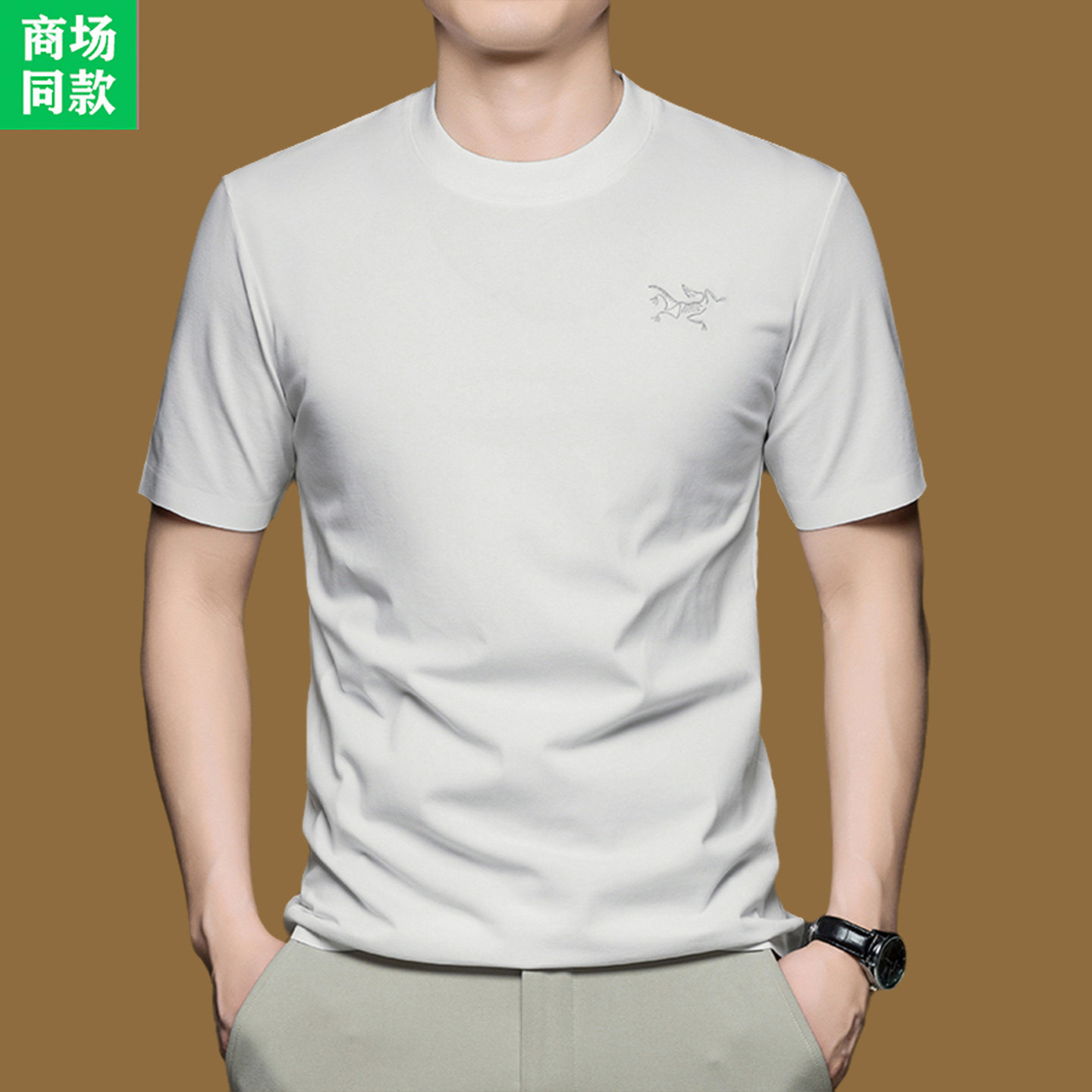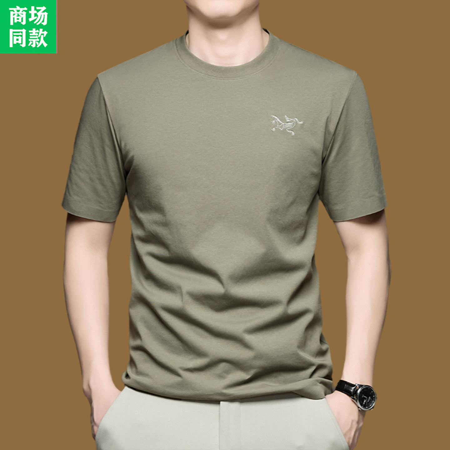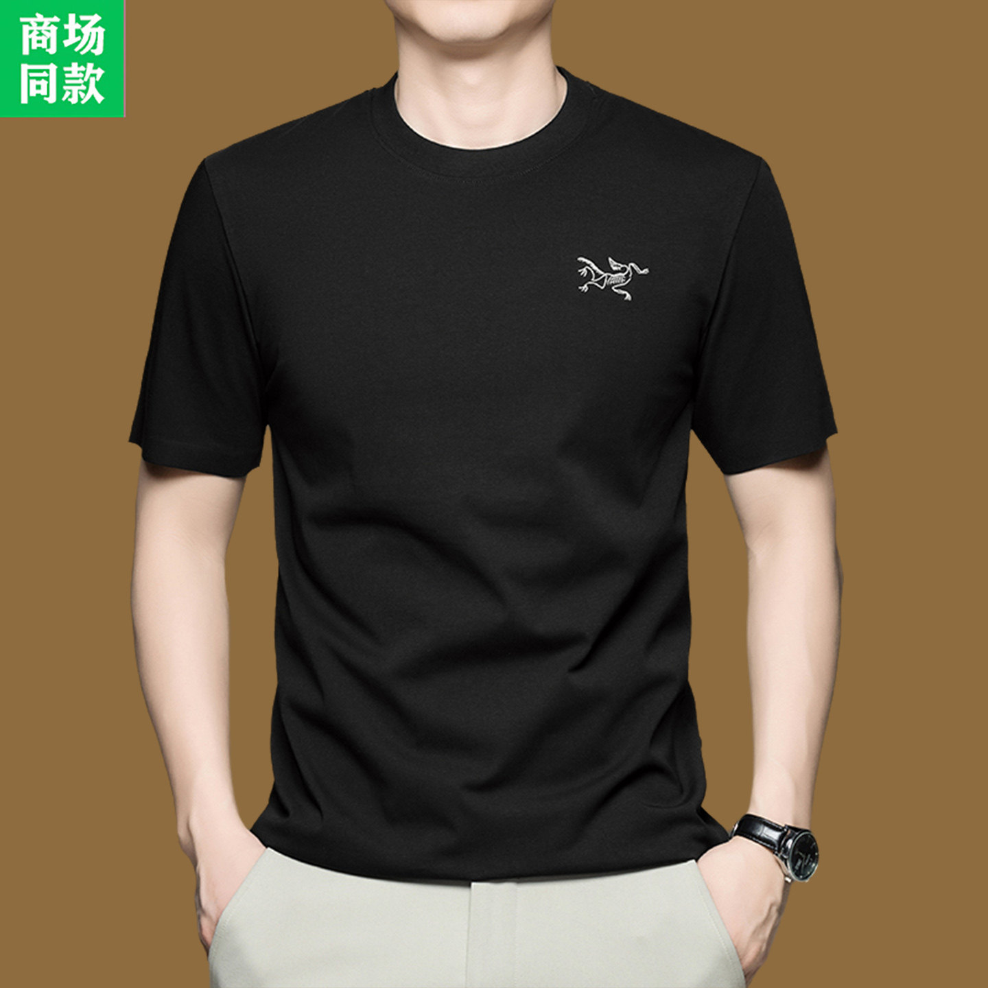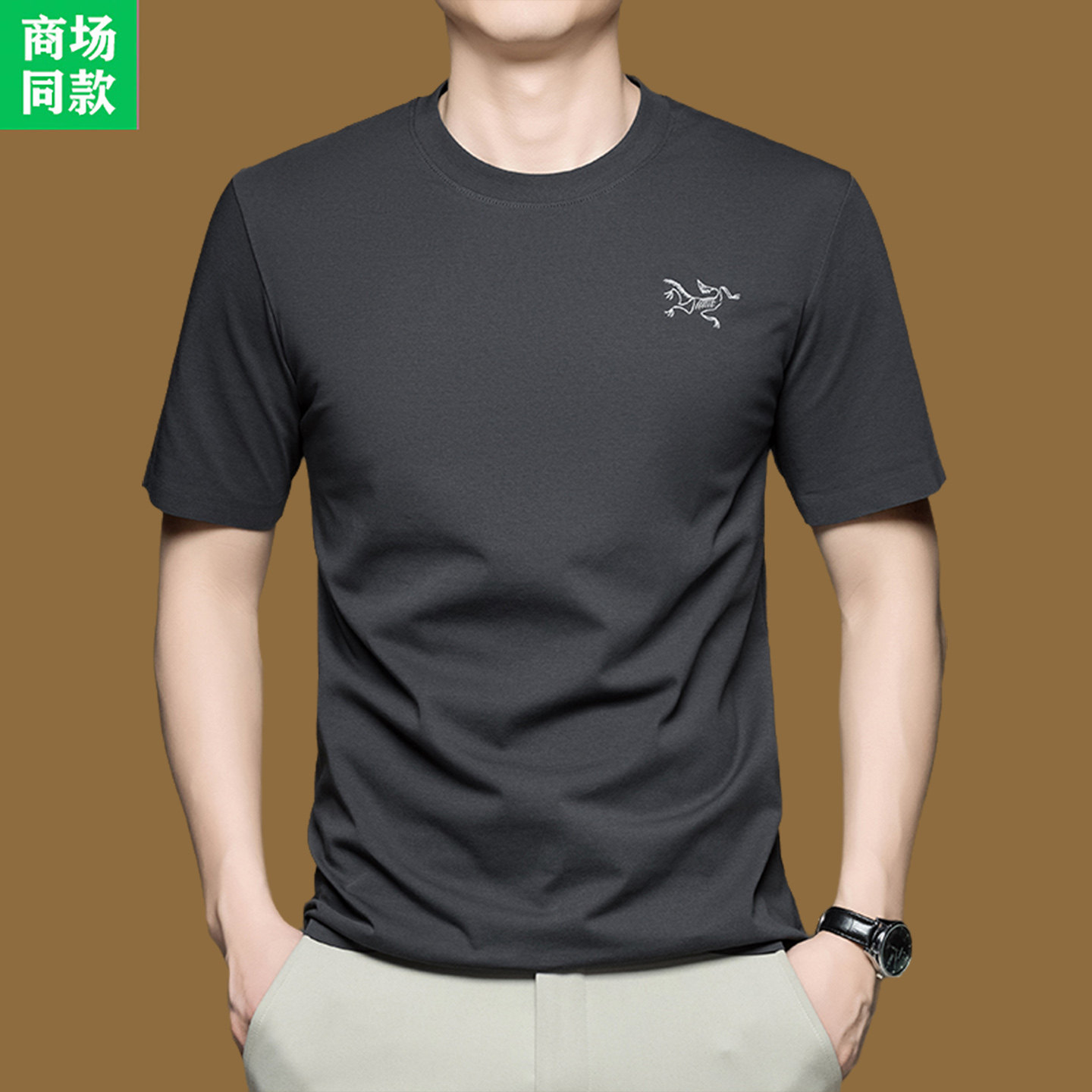 高端短袖t恤男士圆领新款简约潮流透气吸汗刺绣鸟同款打底衫上衣