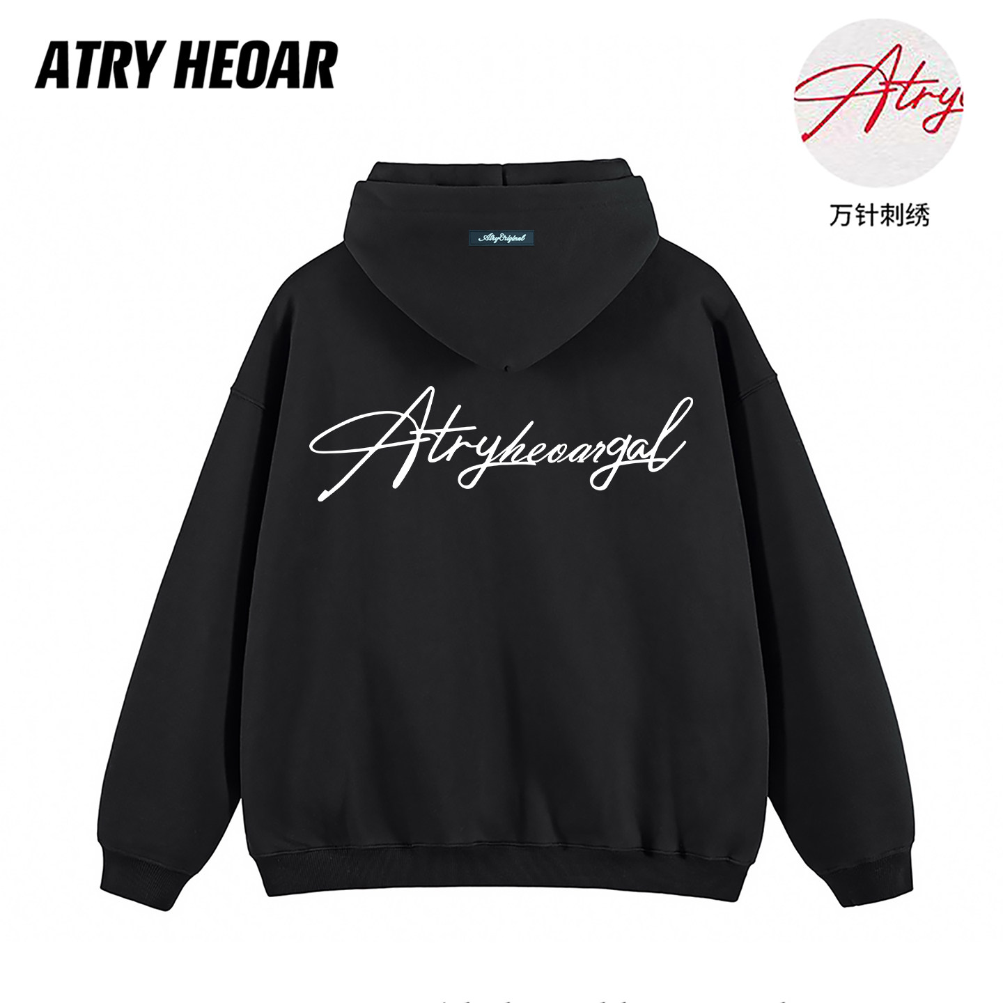 ATRY HEOAR连帽卫衣男国潮牌美式高街运动休闲重磅刺绣情侣外套女