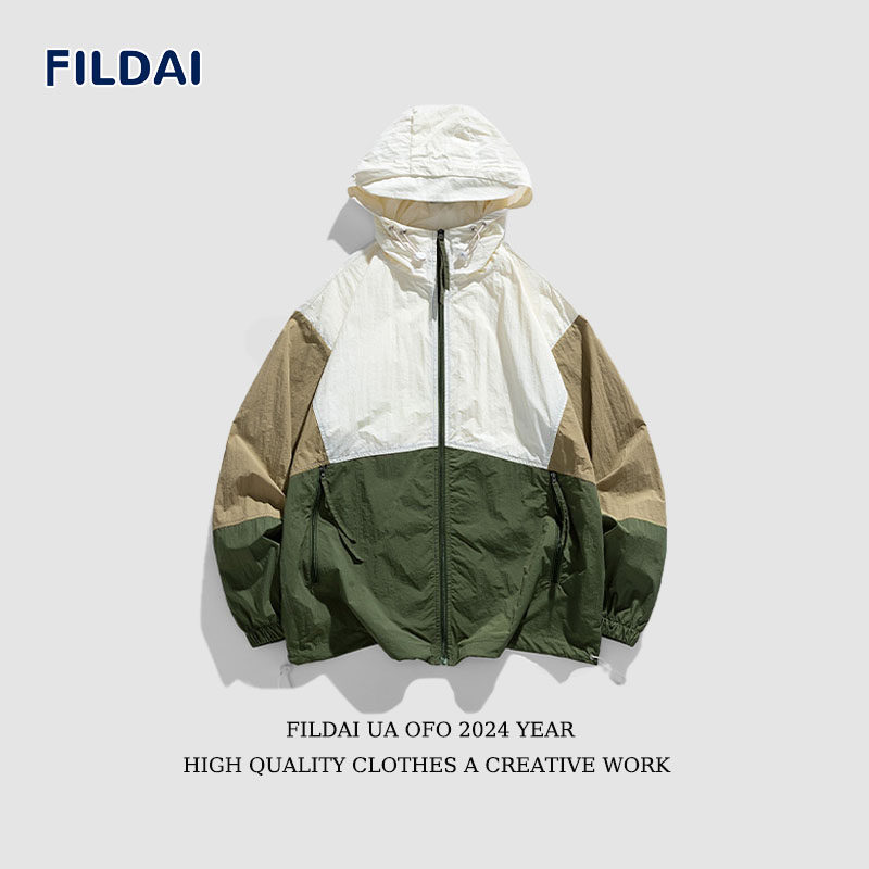 斐勒满天星夏季连帽防晒服男士UPF50+潮流拼接宽松户外防晒衣男款