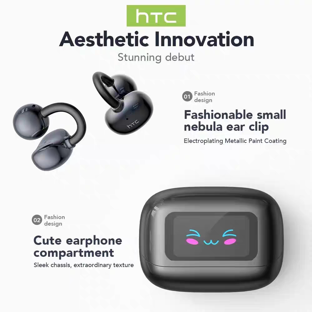 HTC NE54翻译蓝牙耳机耳夹式带触控显示屏跑步运动耳机蓝牙6.0