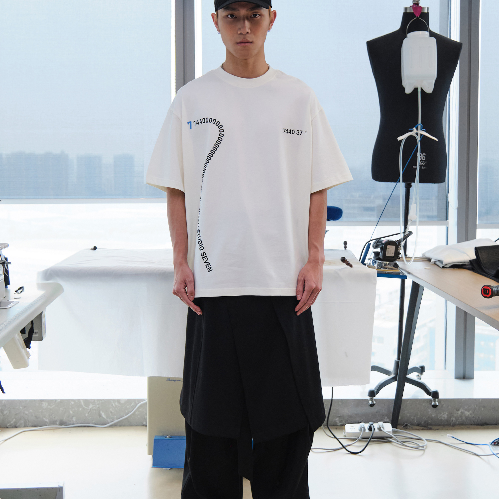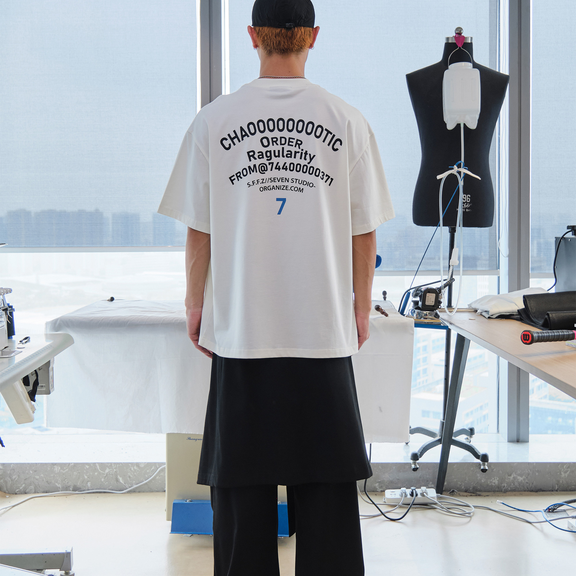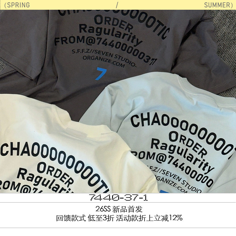 7440 37 1 三色入品牌扇形文字排版印花短袖T恤