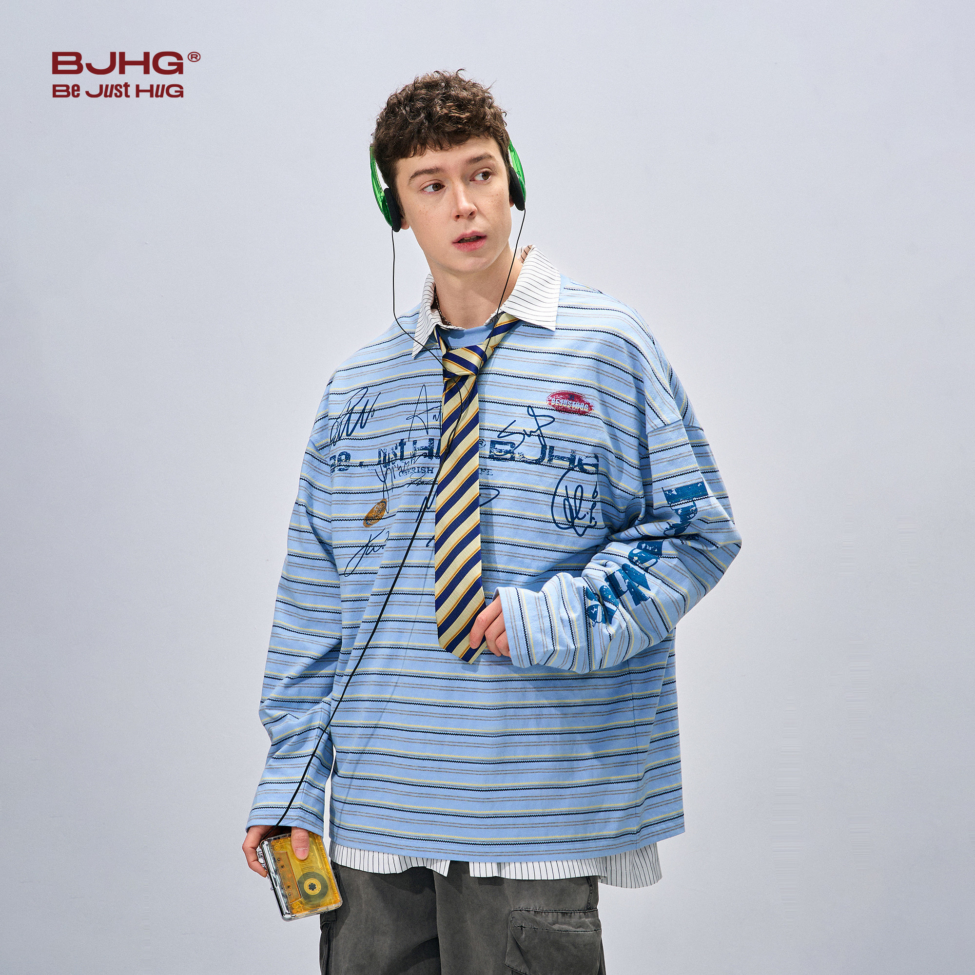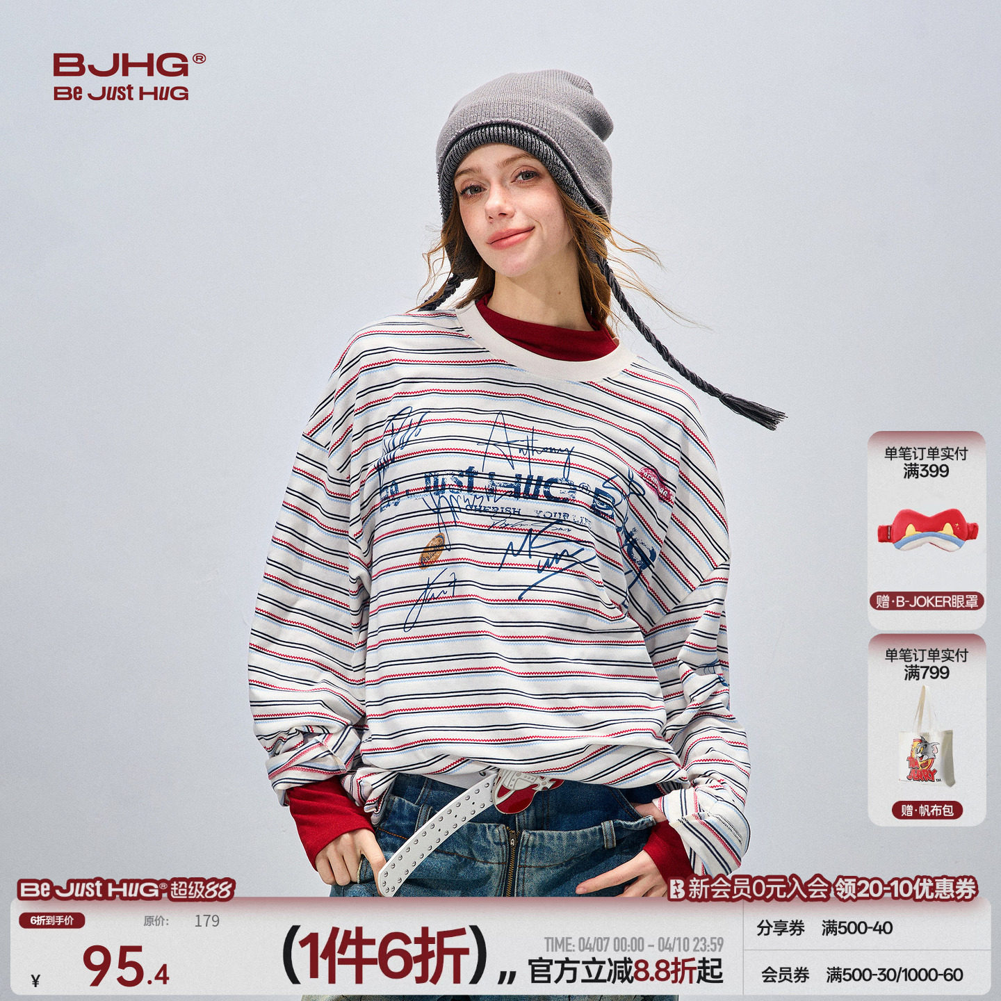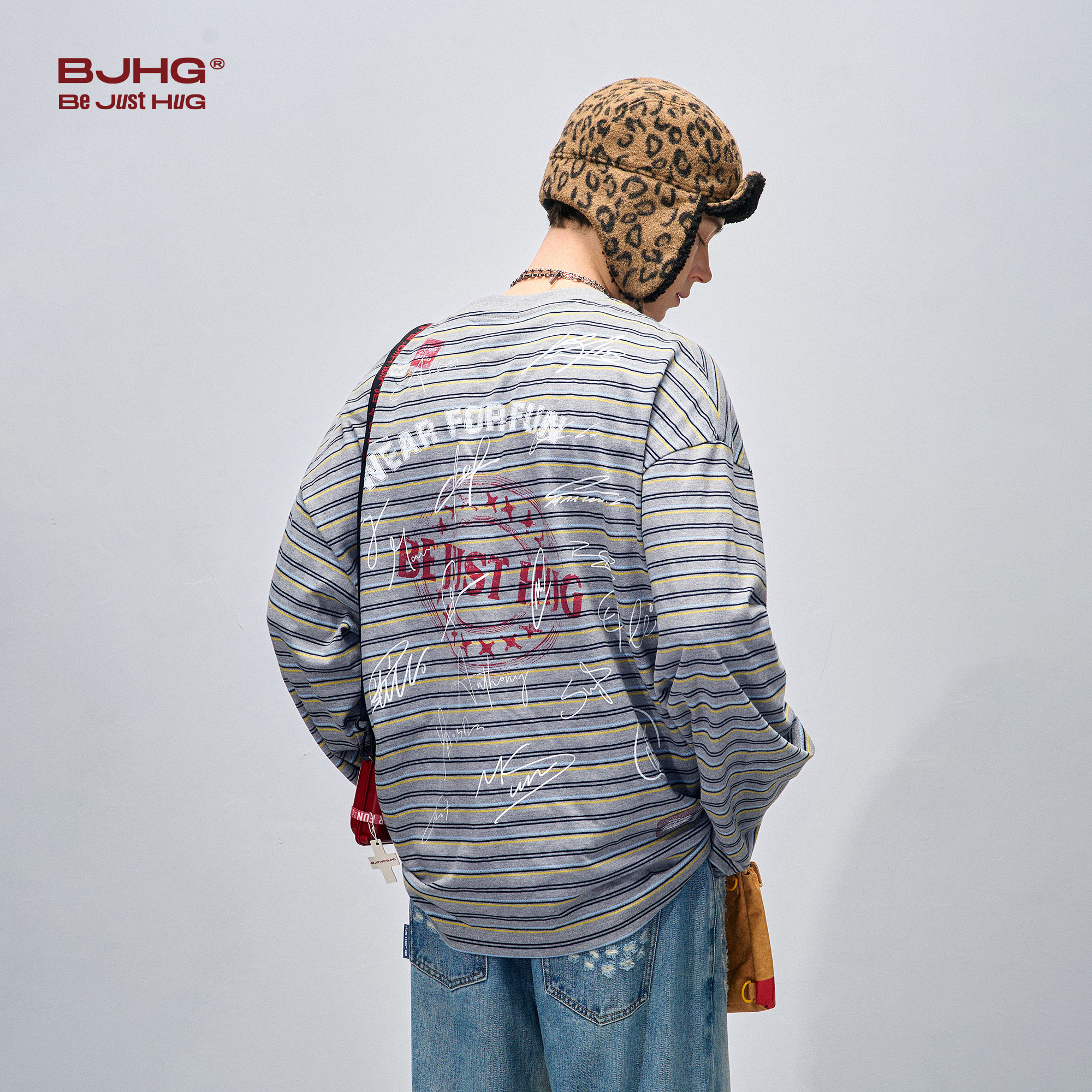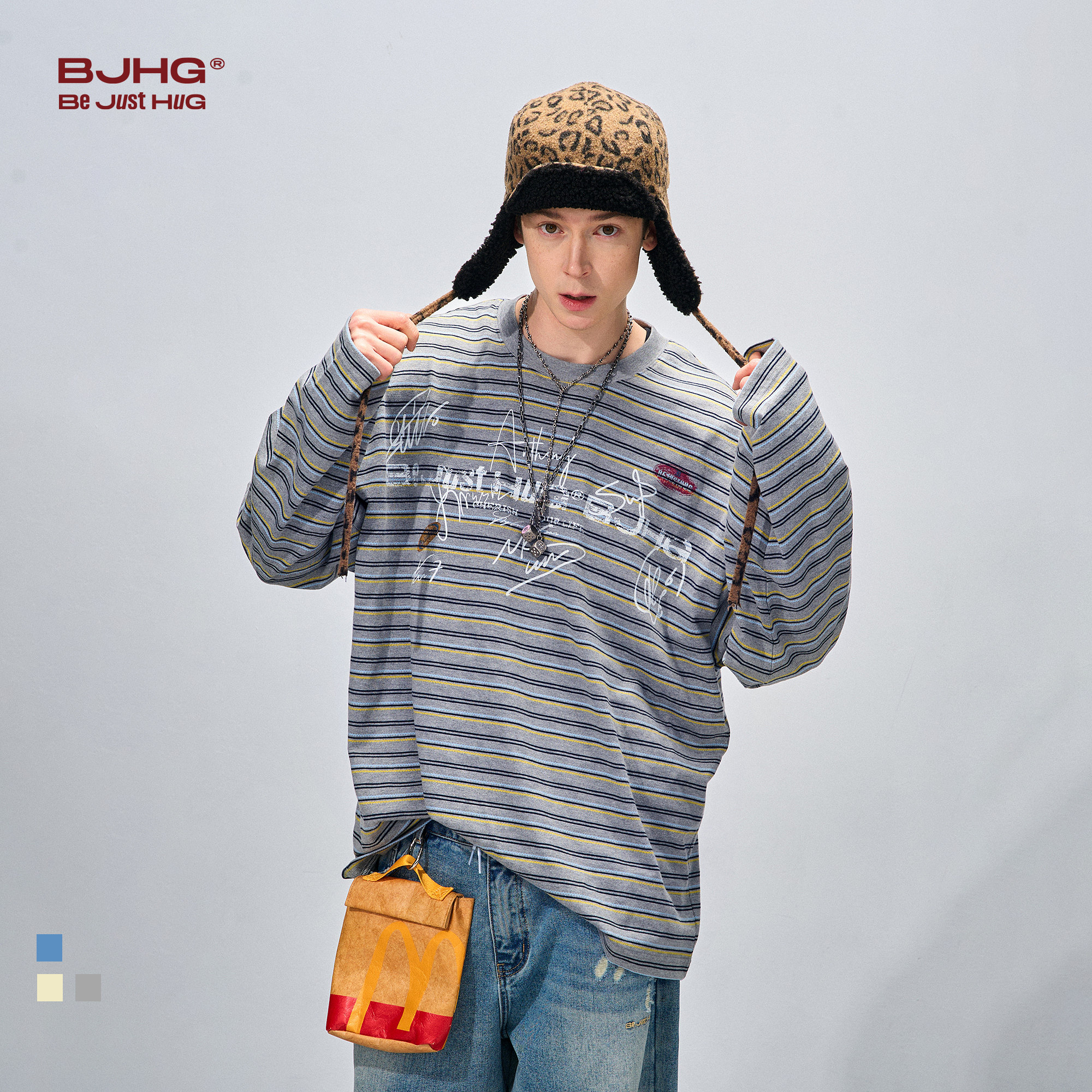 --------------------- BJHG不计后果 条纹涂鸦印花长袖T恤男款春季美式针织衫情侣上衣女 【原售价】209元 【现售价】95元 【推荐理由】