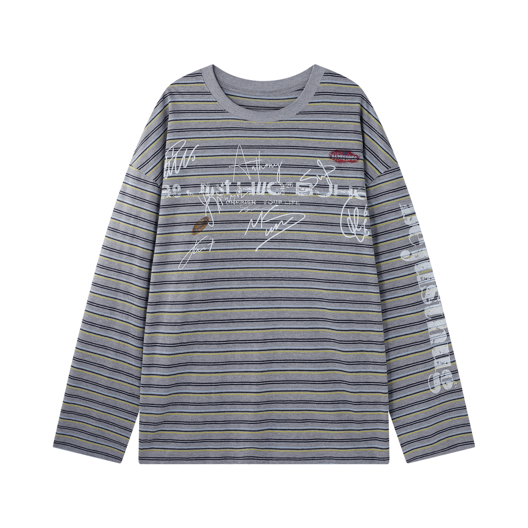 BJHG不计后果 条纹涂鸦印花长袖T恤男款春季美式针织衫情侣上衣女