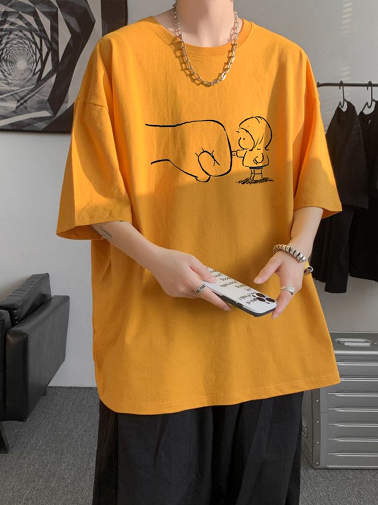 wassup happy短袖t恤男夏季薄款大码宽松纯棉半袖港风圆领五分袖