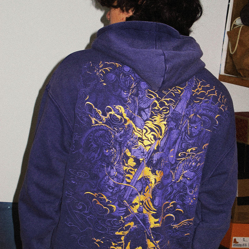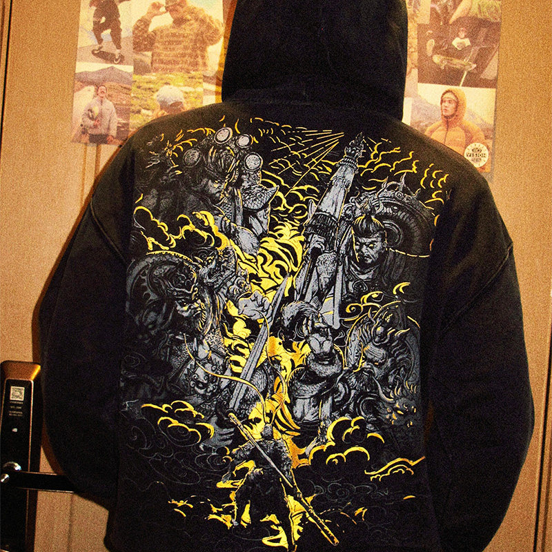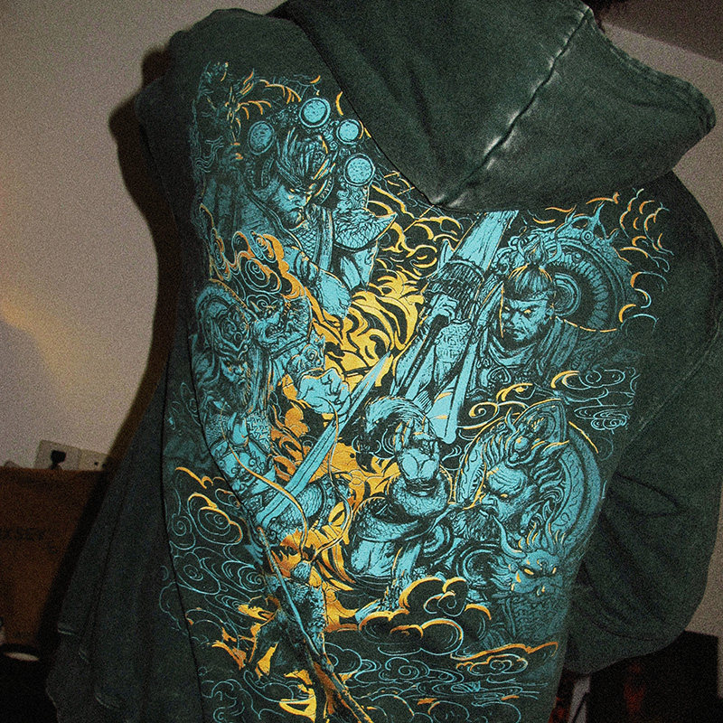 --------------------- TEE7-国潮黑神话悟空周边四大天王连帽开衫做旧美式纯棉拉链卫衣 【原售价】374元 【现售价】317元 【推荐理由】