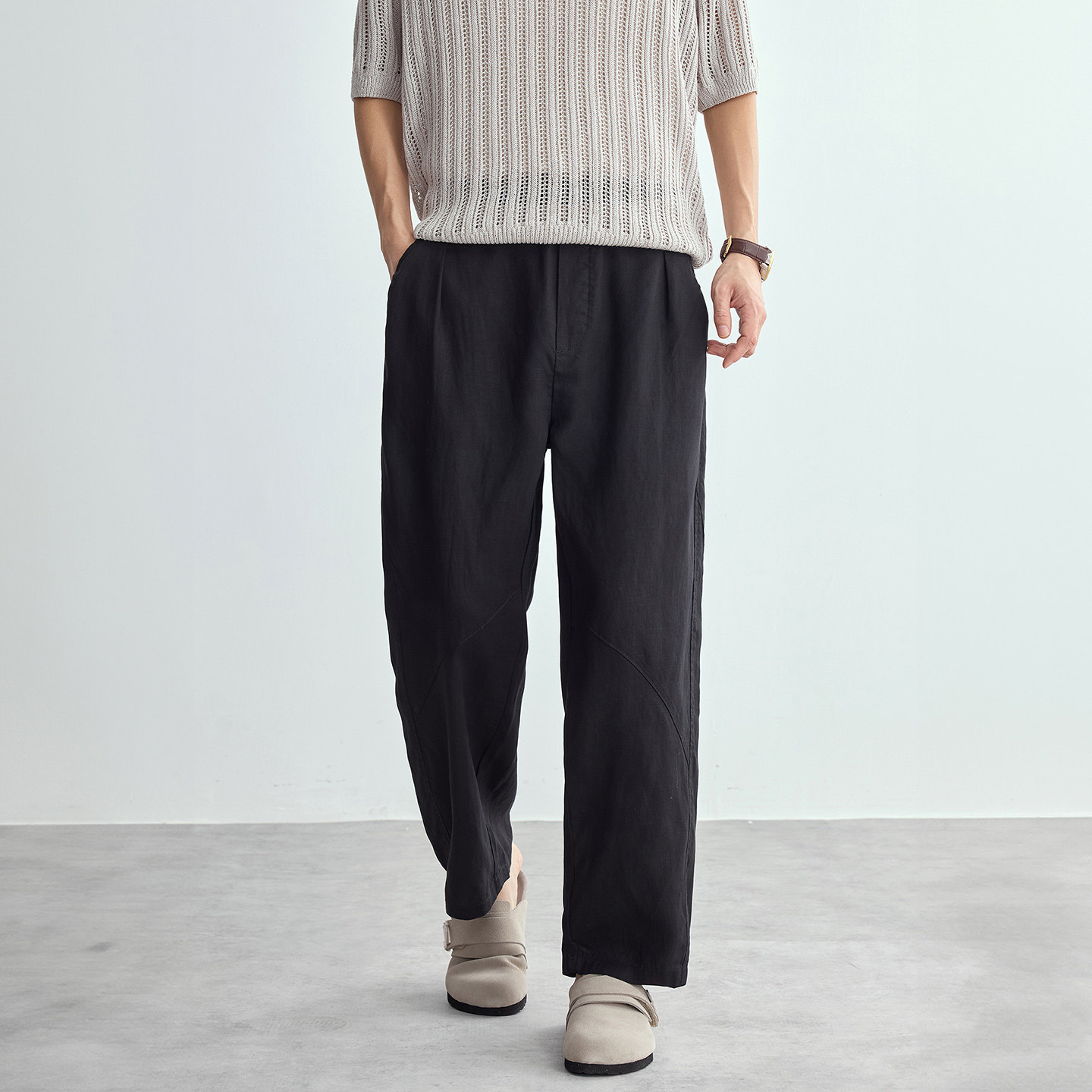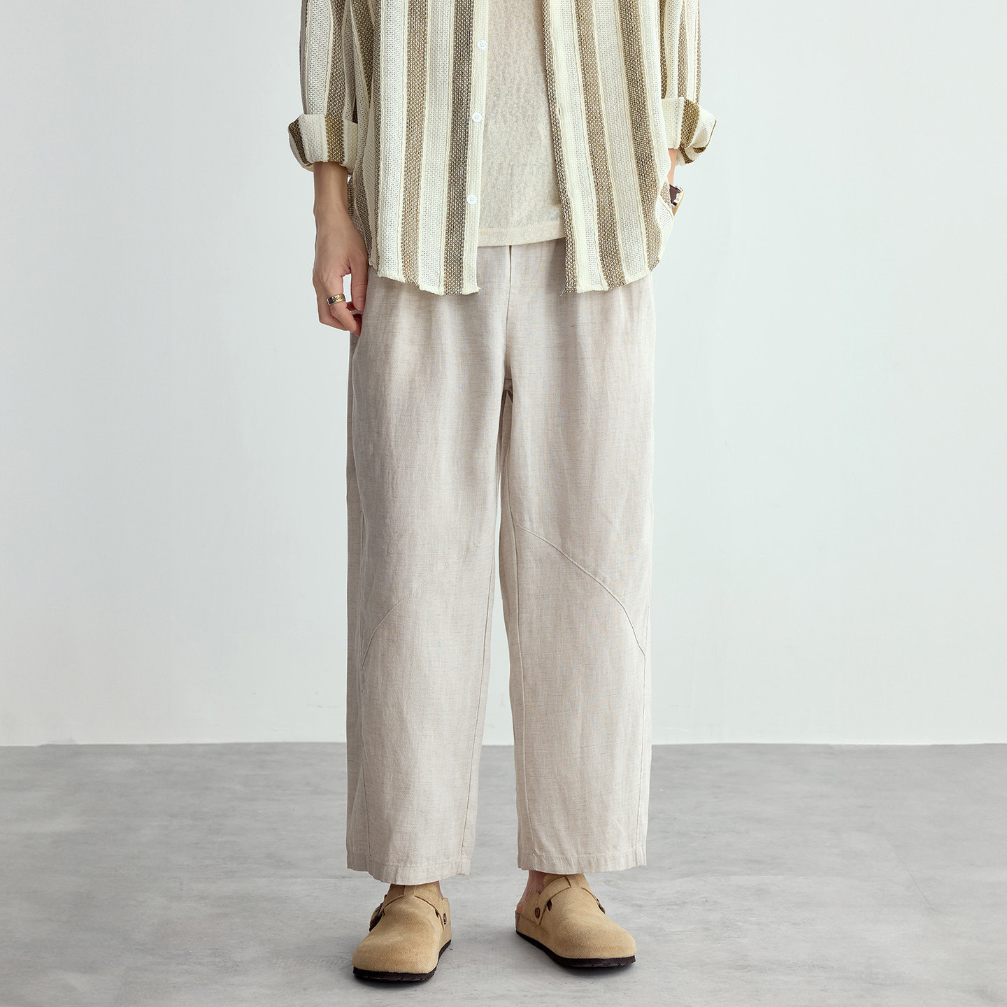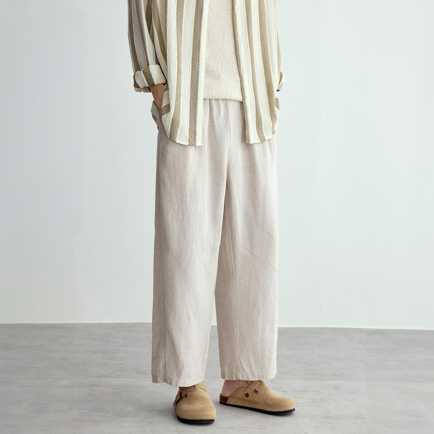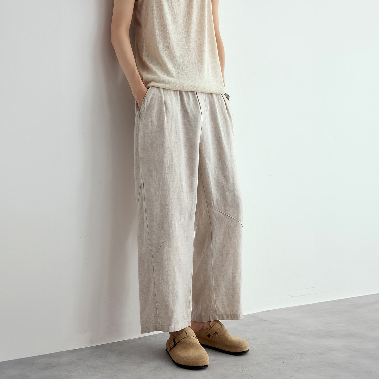 --------------------- 【休闲老钱风】亚麻九分休闲裤男士夏季莱赛尔抗皱透气阔腿直筒裤 【原售价】138元 【现售价】121元 【推荐理由】