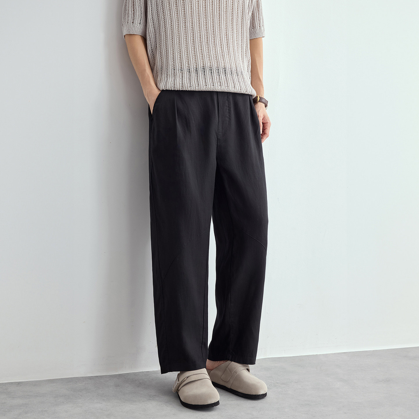 【休闲老钱风】亚麻九分休闲裤男士夏季莱赛尔抗皱透气阔腿直筒裤