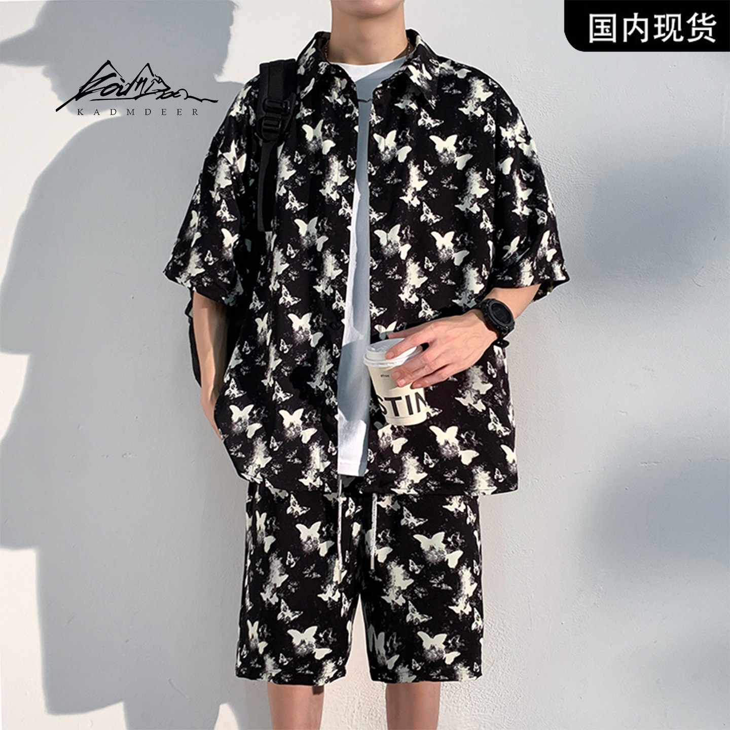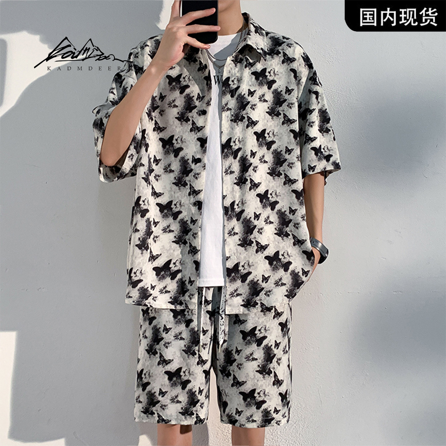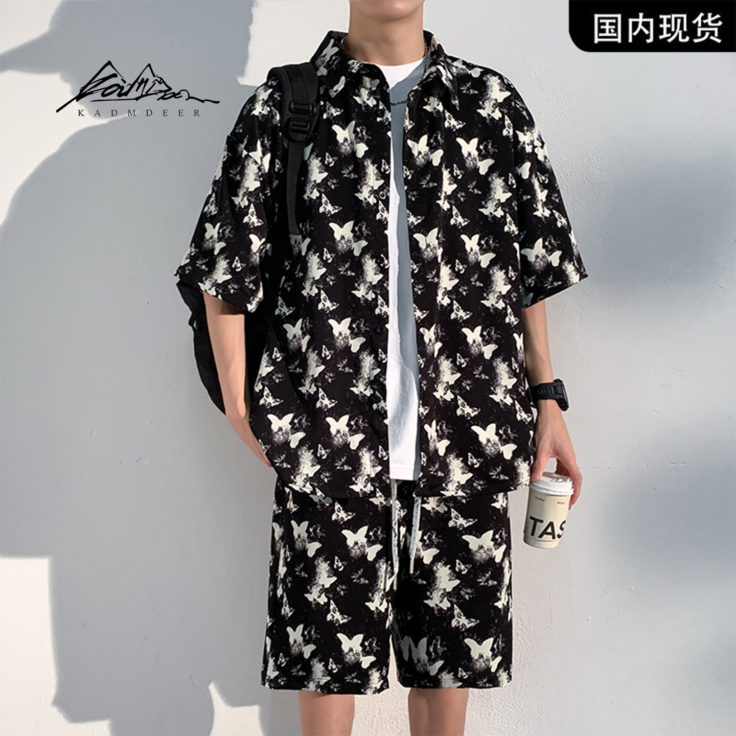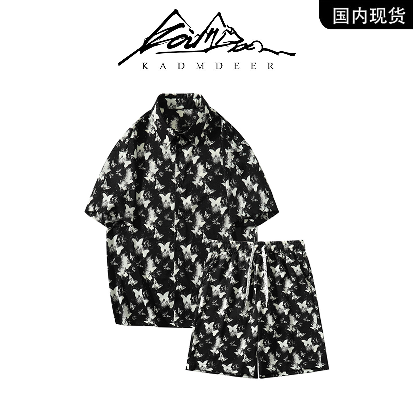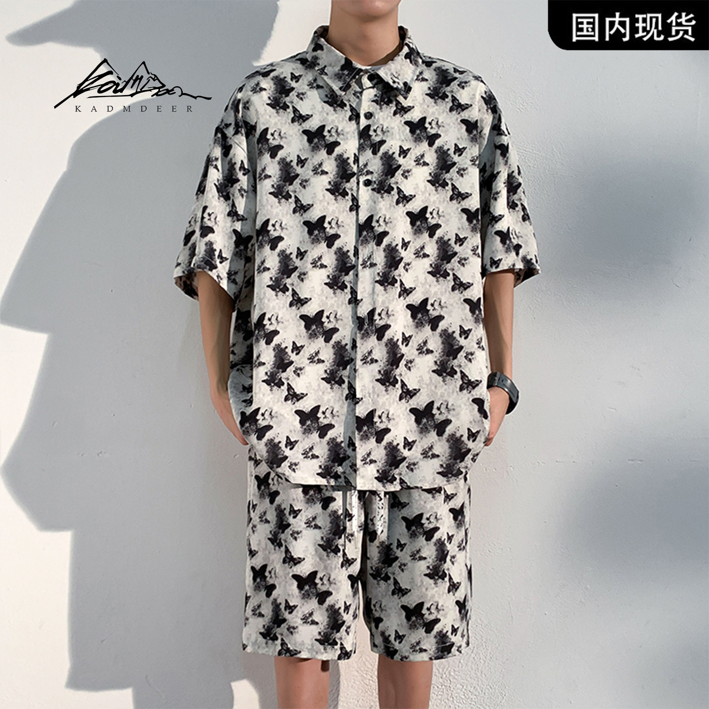 --------------------- 【品牌现货撤柜】KADM DEER蝴蝶印花短袖衬衫短裤宽松潮流男套装 【原售价】628元 【现售价】328元 【推荐理由】