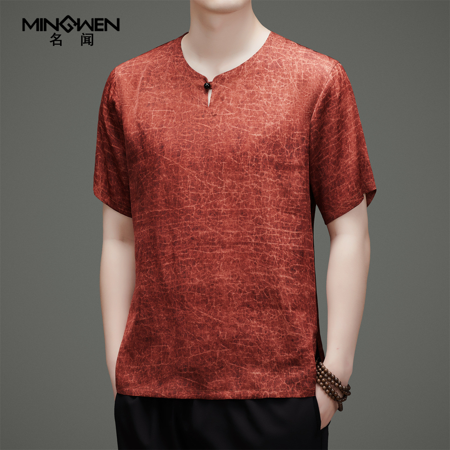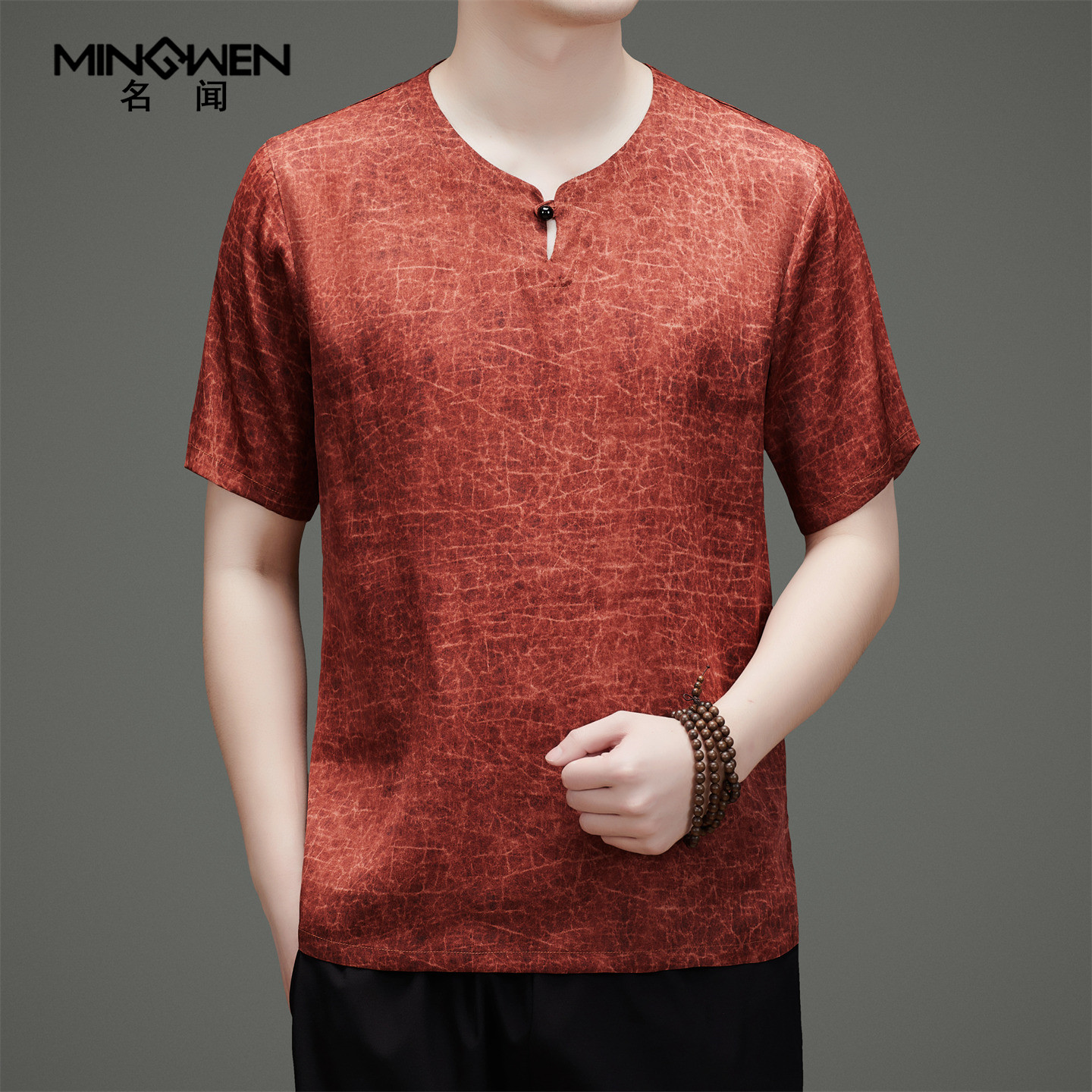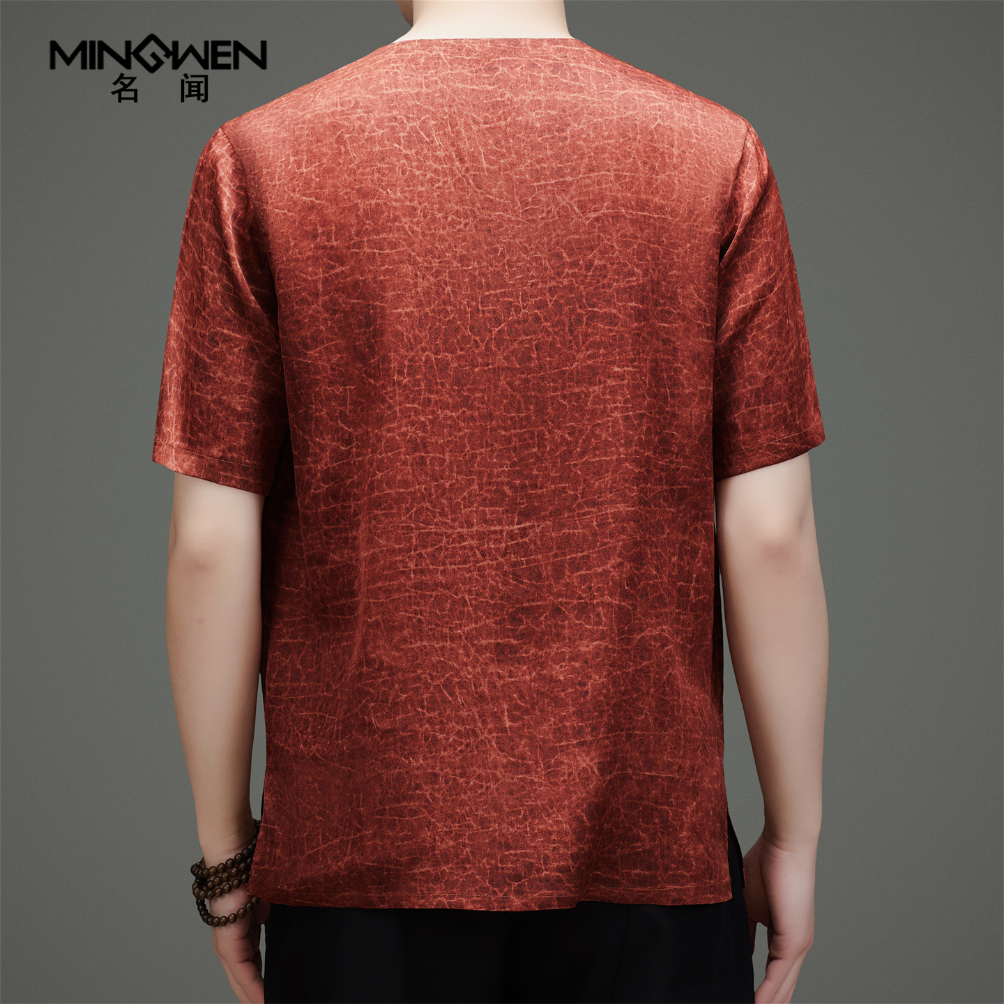 --------------------- 龟裂纹香云纱真丝圆领短袖t恤男装高级感新中式国潮风桑蚕丝上衣 【原售价】1378元 【现售价】763元 【推荐理由】