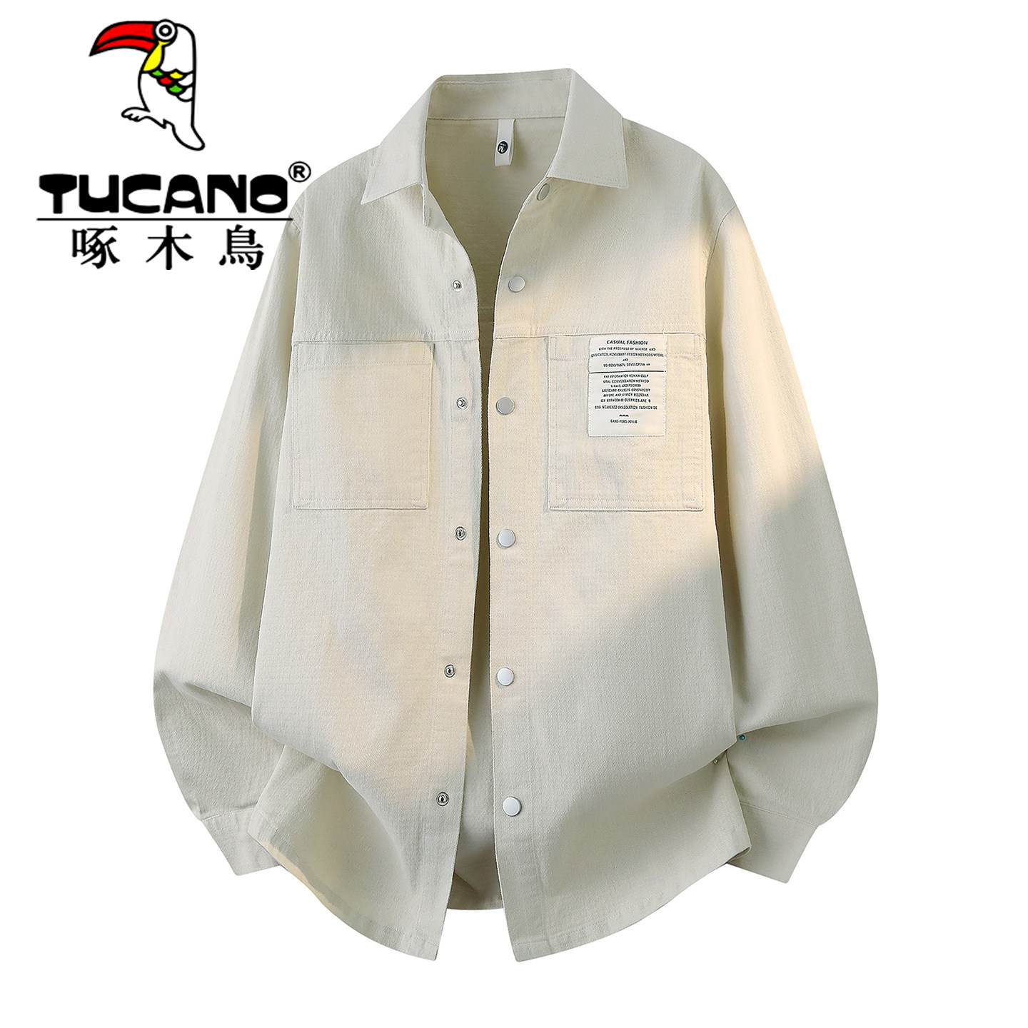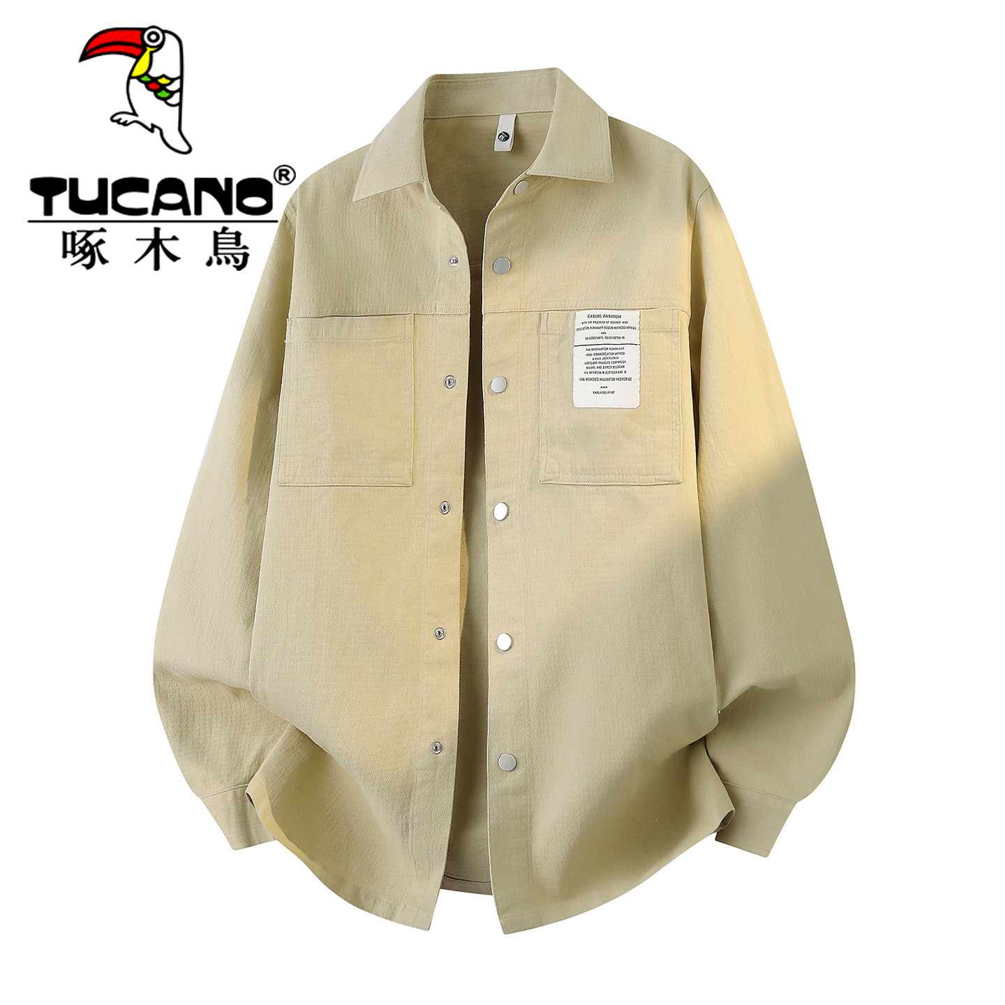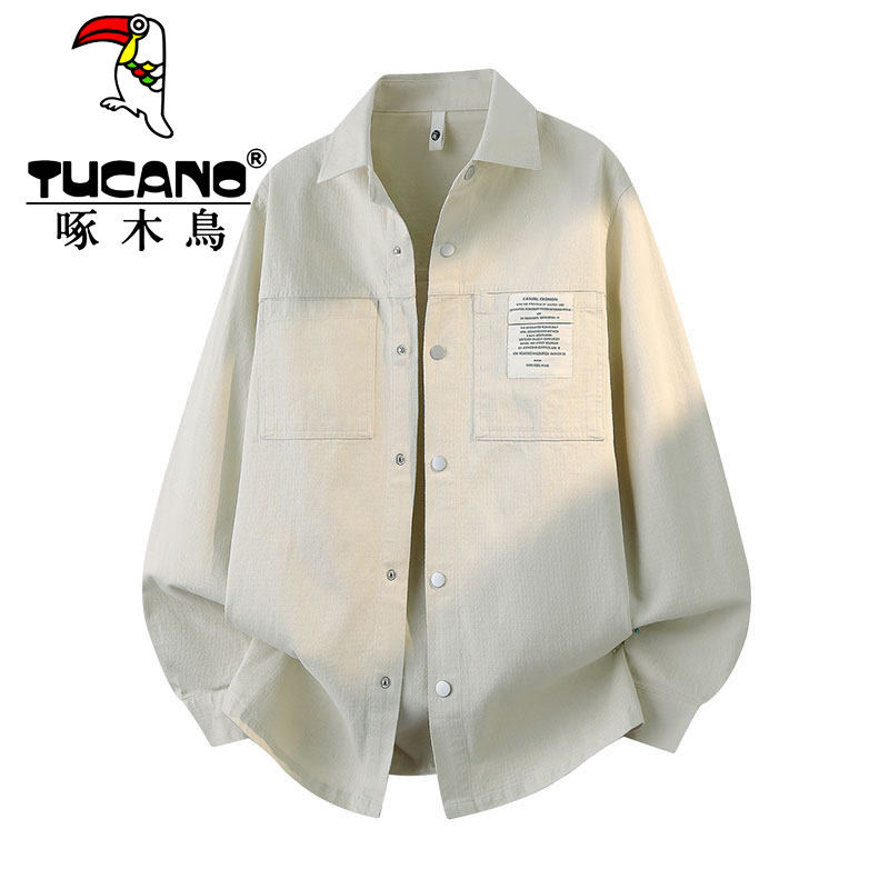 淘宝啄木鸟纯棉夹克男纹理感春秋季潮牌宽松工装衬衫外套美式休闲上衣