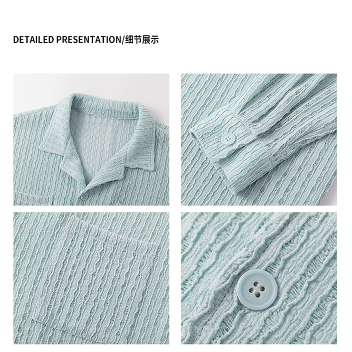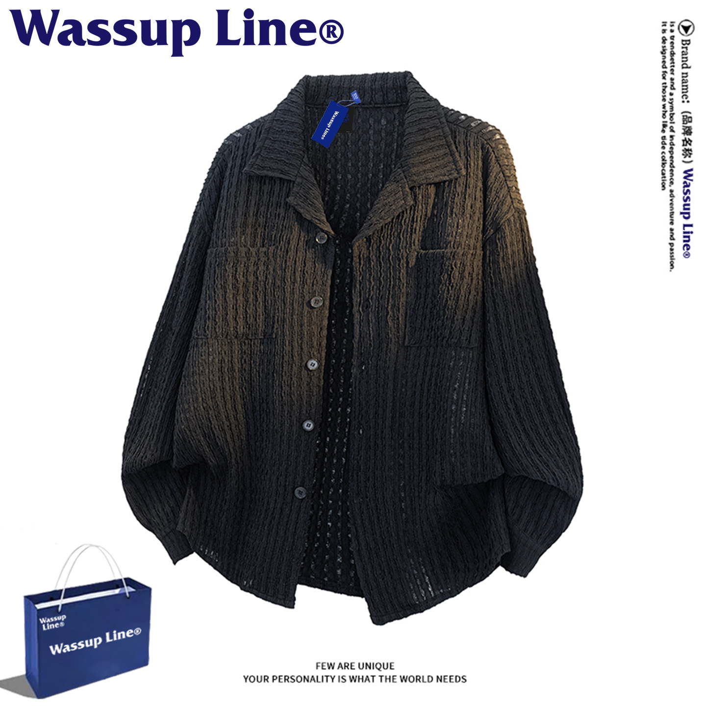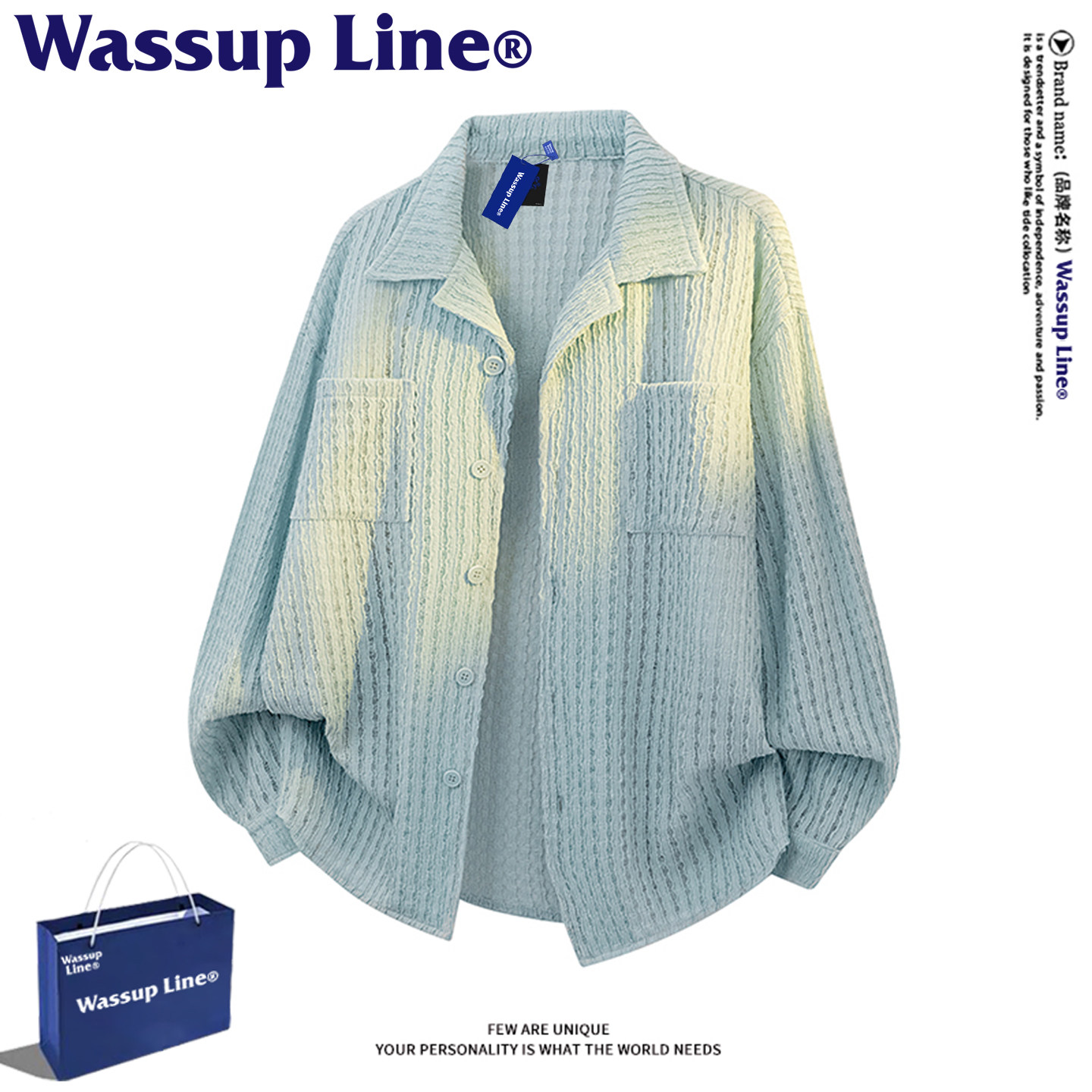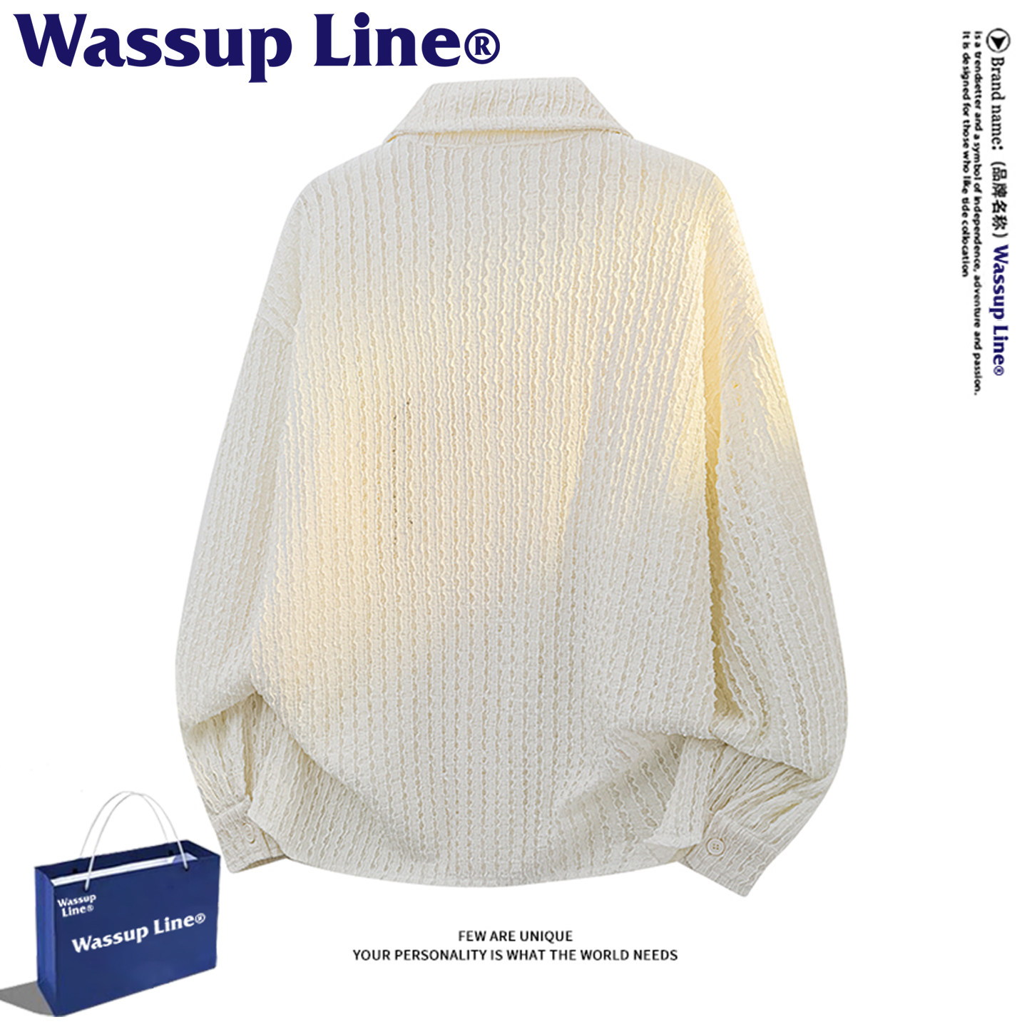 WASSUP Line潮牌美式提花复古衬衫男女春秋宽松情侣长袖衬衣外套