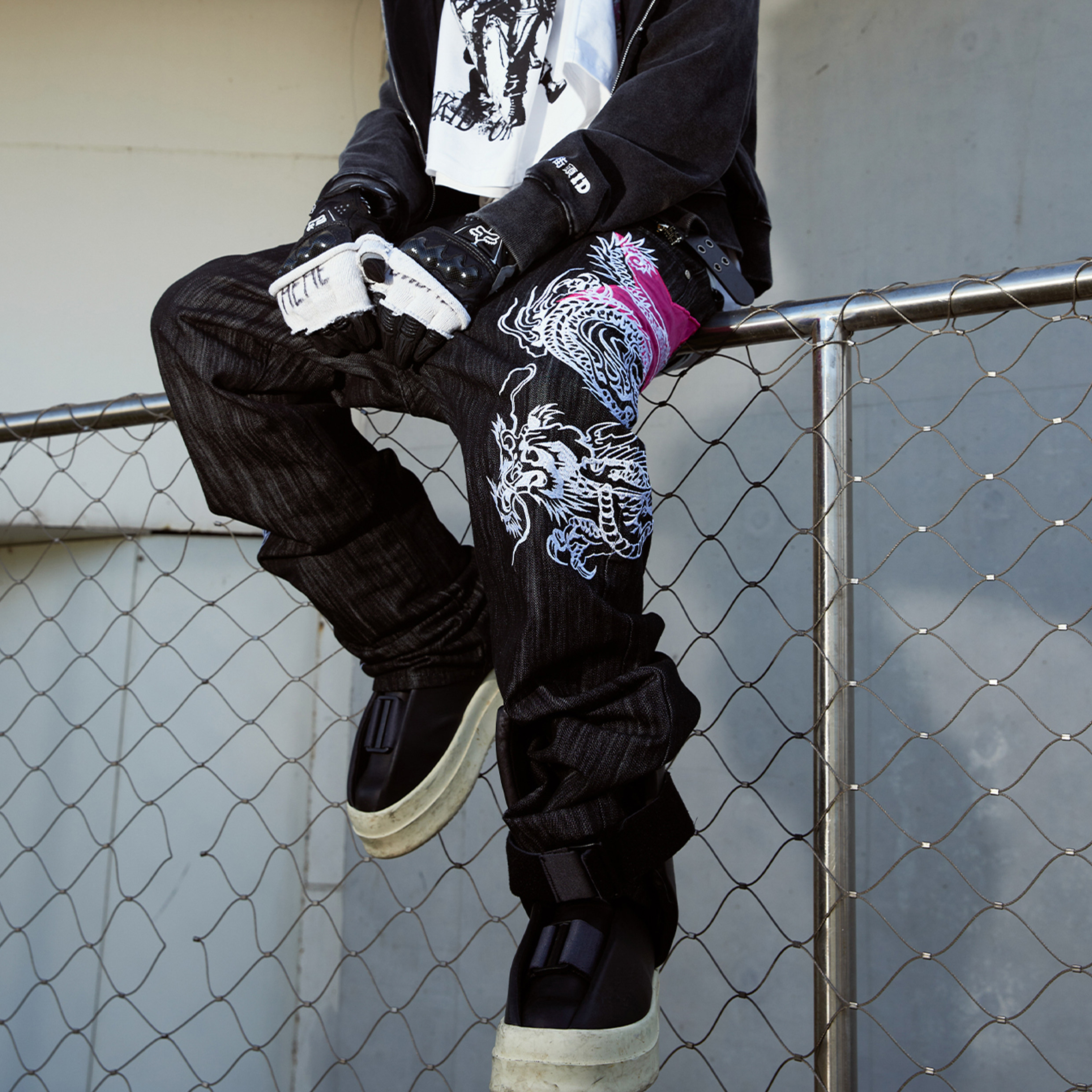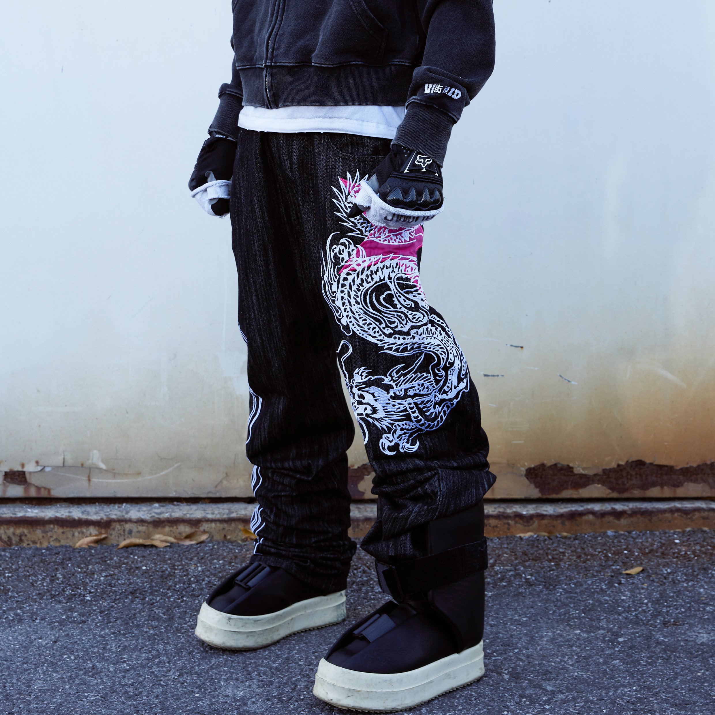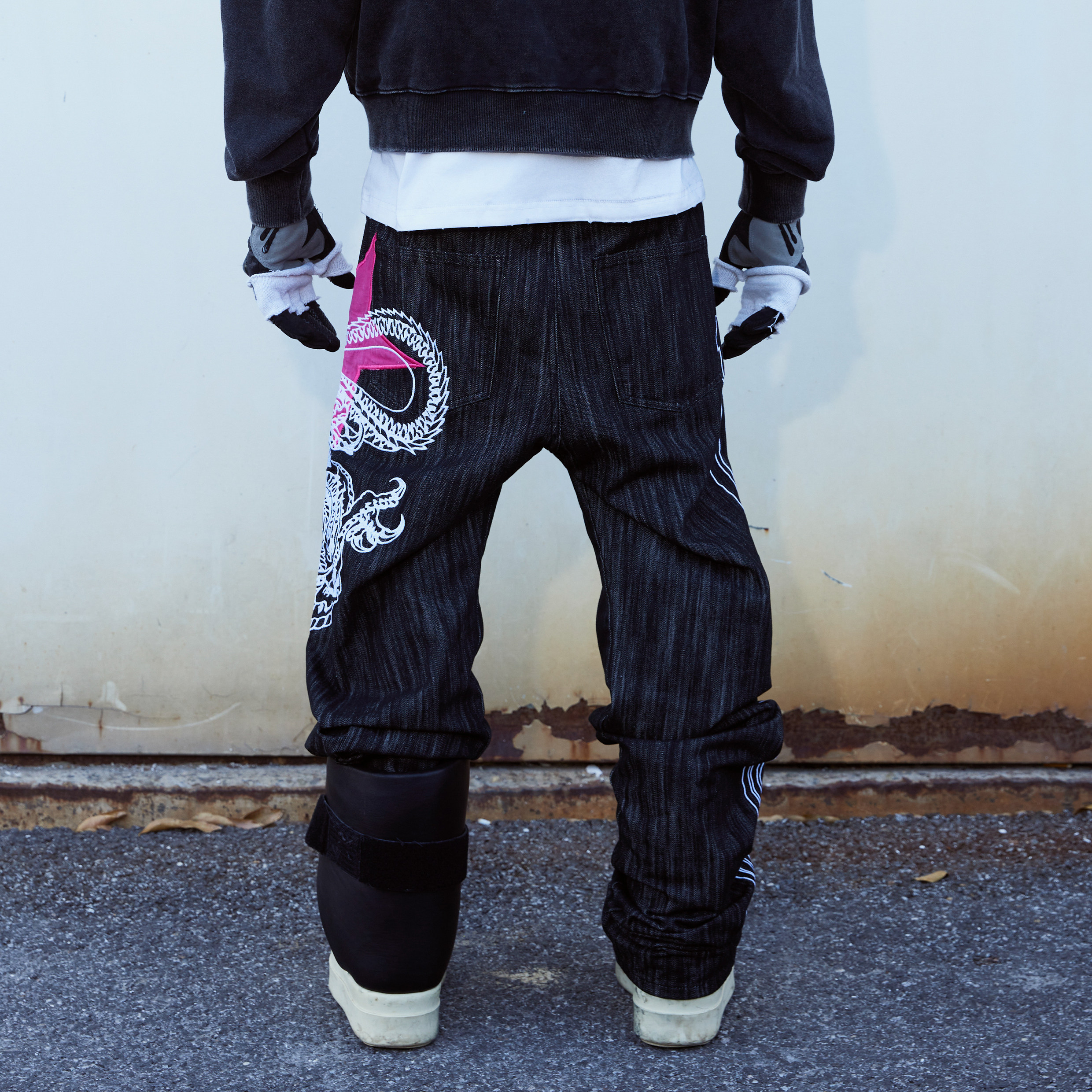 Vinkid(云梯)"真神龙"牛仔裤美式潮流小众国潮百搭街头直筒长裤