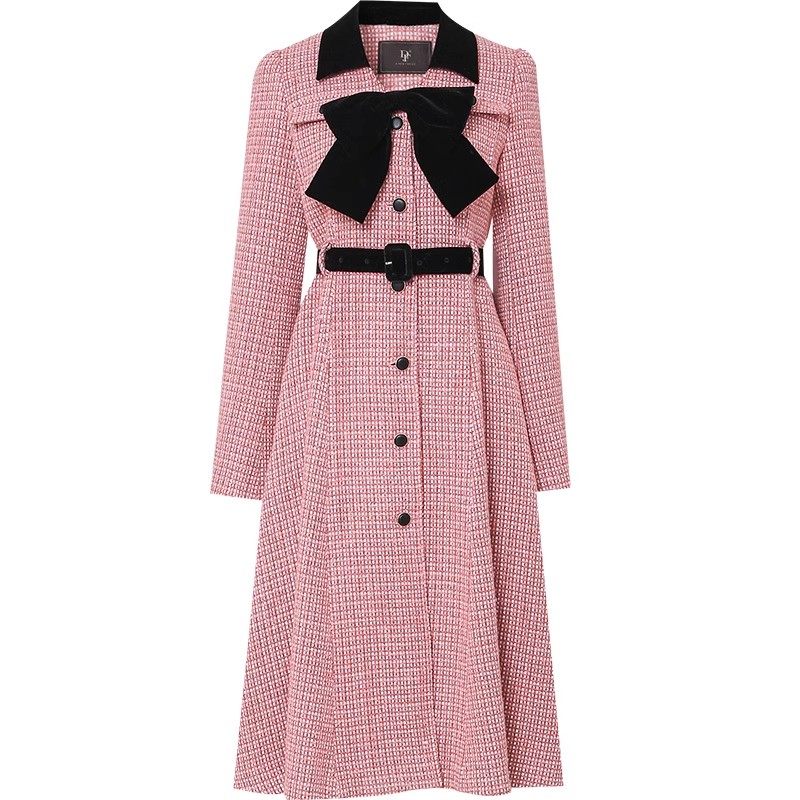 --------------------- 2026春款小香风撞色丝绒蝴蝶结收腰A摆中长款毛呢外套 --------------------- --------------------- 【原价】618元 【券后价】505元