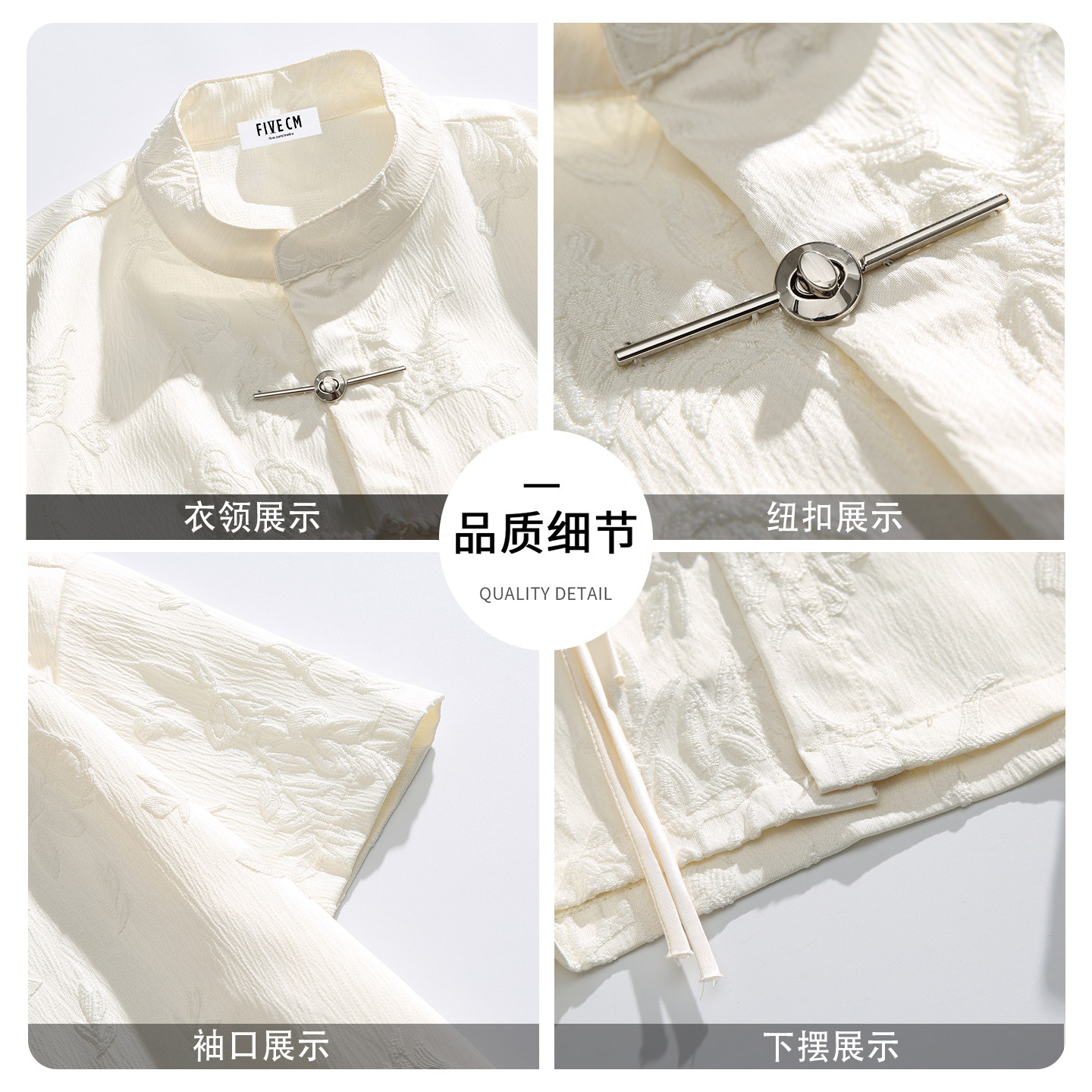 --------------------- it FIVECM新中式风立领盘扣短袖衬衫男夏季宽松透气提花国潮衬衣 【原售价】699元 【现售价】209元 【推荐理由】
