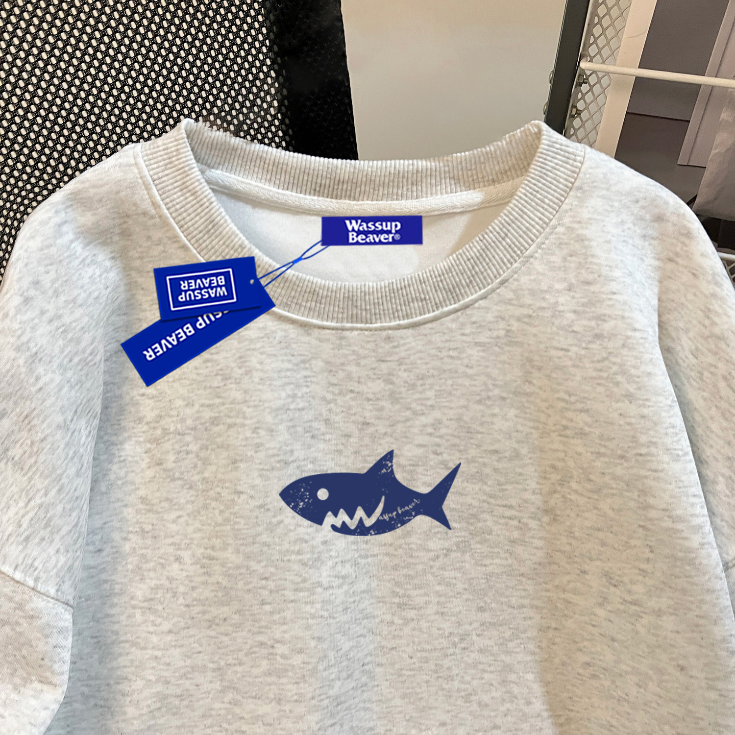 WASSUP BEAVER重磅设计感巨齿大白鲨加绒圆领卫衣宽松休闲情侣装