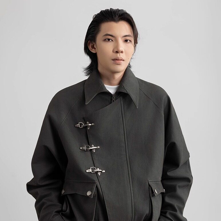 BSN1负一层【灰影莲甲】新款小众异形榫卯领子立体工装飞机扣夹克