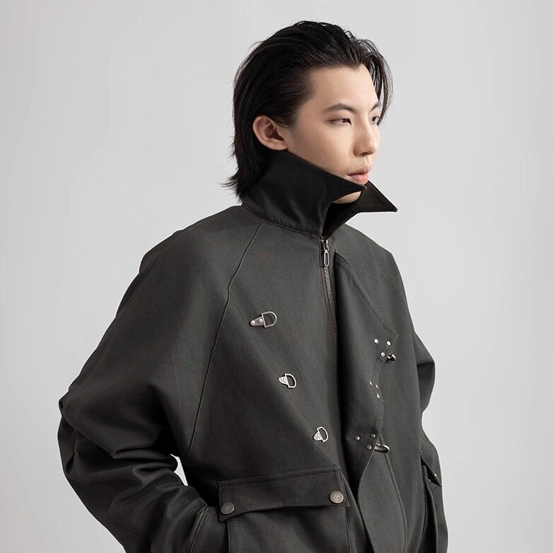 --------------------- BSN1负一层【灰影莲甲】新款小众异形榫卯领子立体工装飞机扣夹克 【原售价】529元 【现售价】529元 【推荐理由】