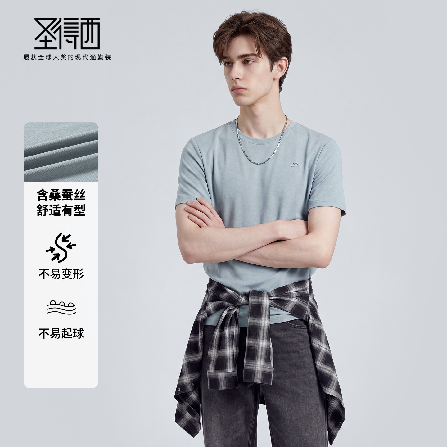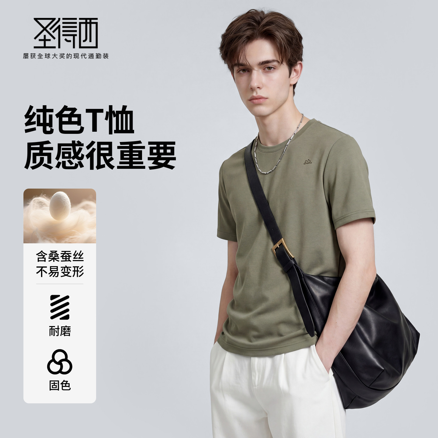 --------------------- 【含桑蚕丝&固色抗起球】圣得西圆领短袖T恤男款2026春夏宽松上衣 【原售价】199元 【现售价】89元 【推荐理由】