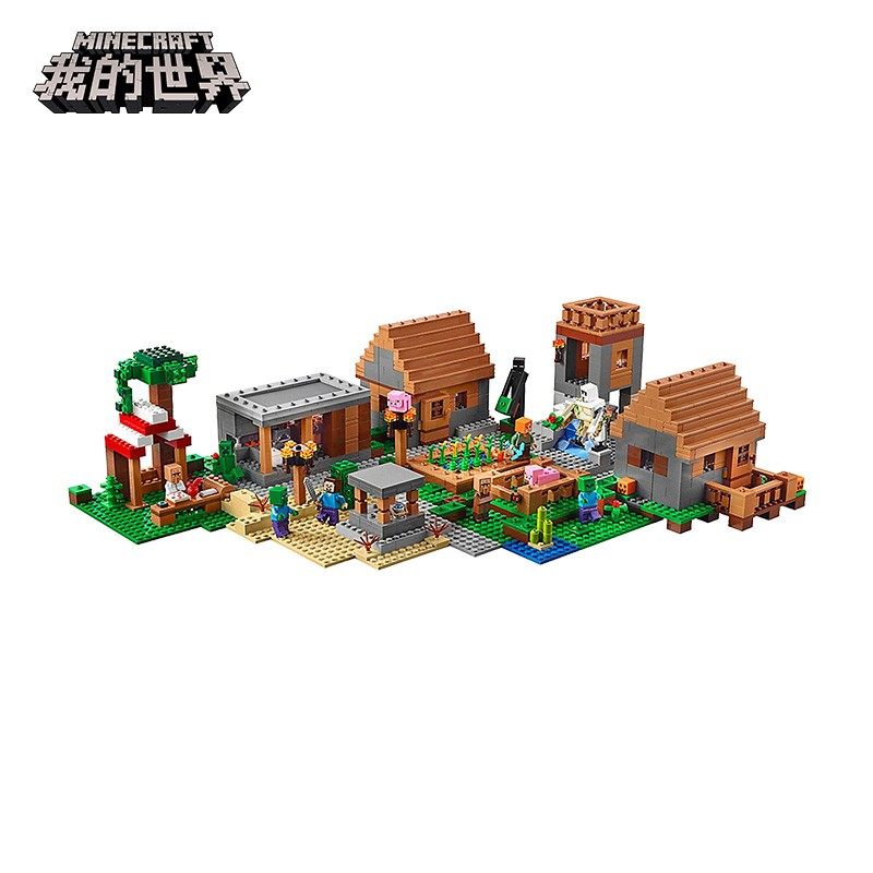 中国积木我的世界系列完整豪华版村庄21128儿童益智拼装玩具10531