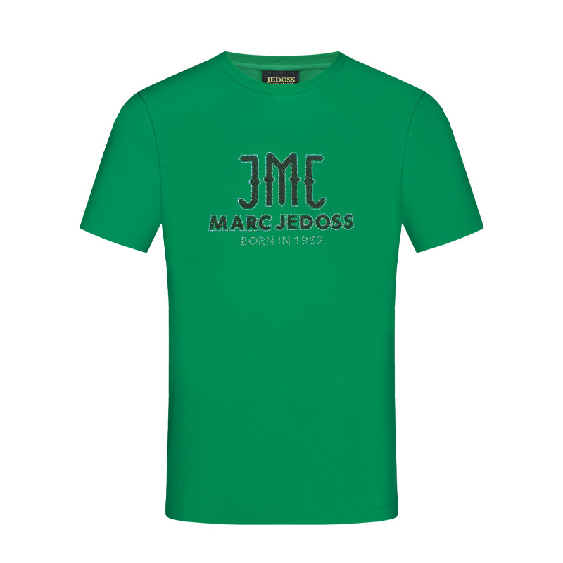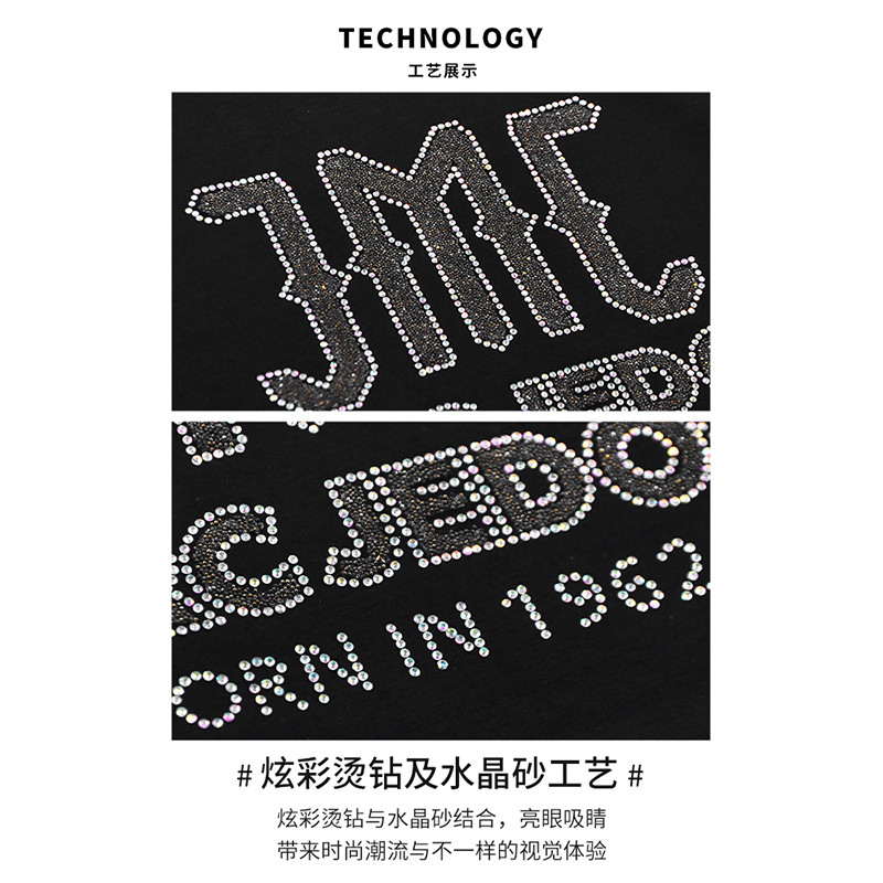 JEDOSS/爵迪斯男装夏季新款字母LOGO烫钻水晶砂短袖T恤103AM