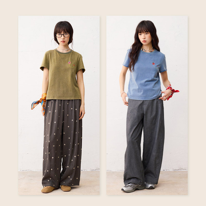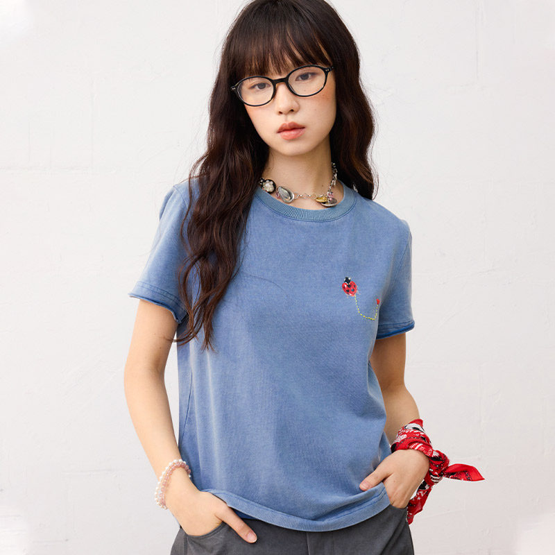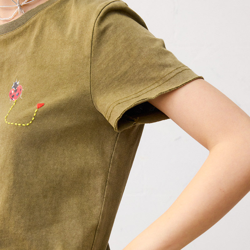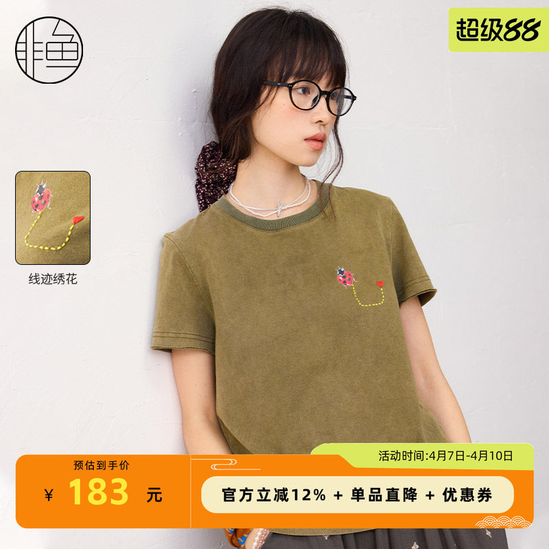 非鱼25夏季时尚休闲女装T恤短袖套头百搭上衣刺绣新款文艺减龄