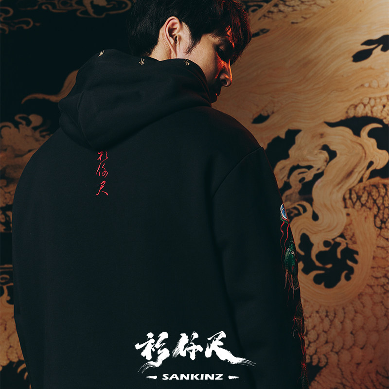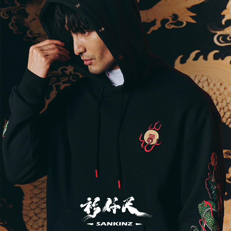 衫仟尺原创【飞龙在天卫衣】秋冬新款中国风国潮印花刺绣外套男女