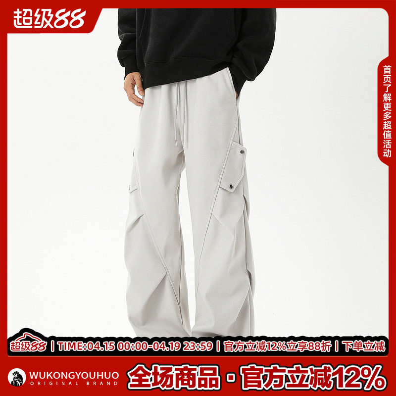 淘宝悟空有货冬季美式重磅加厚褶皱工装裤男宽松潮流阔腿百搭休闲长裤