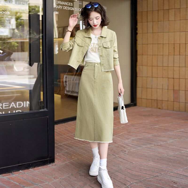 淘宝欧货休闲牛仔穿搭套装女春秋新款设计感炸街时尚修身包臀裙三件套