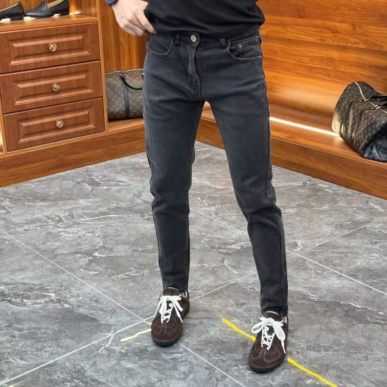--------------------- 黑灰色牛仔裤男修身小脚韩版潮流简约百搭高弹力简约净版休闲长裤 【原售价】296元 【现售价】130元 【推荐理由】