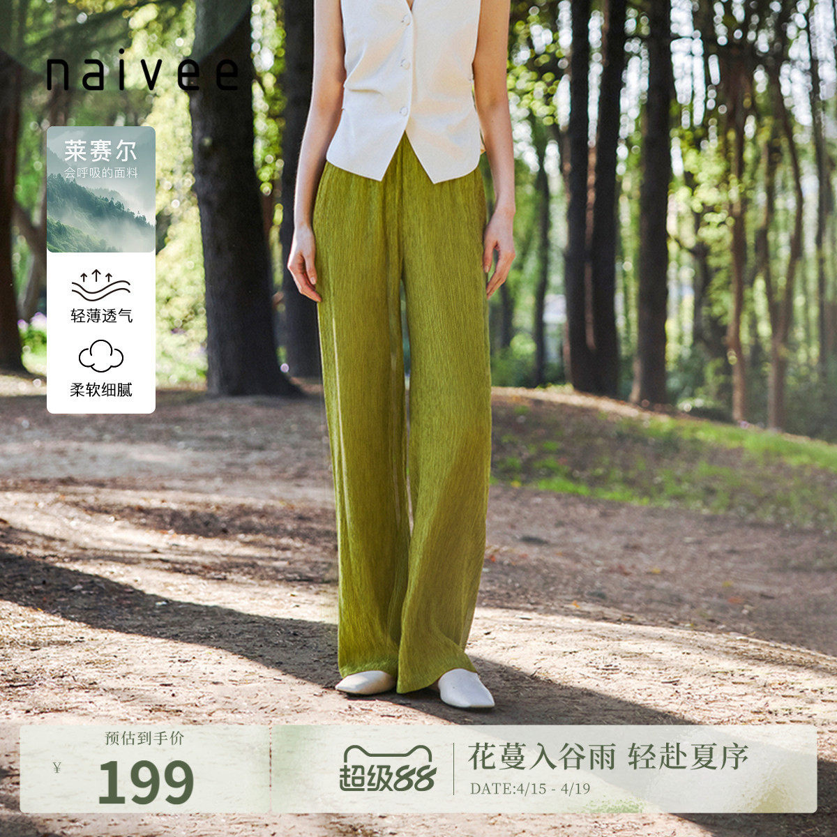 --------------------- 【莱赛尔压褶长裤】naivee纳薇直筒休闲裤女夏季宽松轻薄高腰垂感 【原售价】749元 【现售价】199元 【推荐理由】