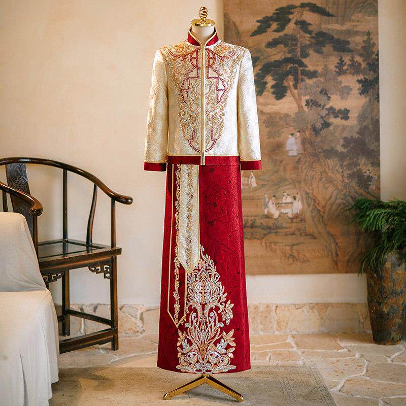 2025新款手工刺绣礼服新郎结婚唐装中式婚礼男士大码婚服敬酒服