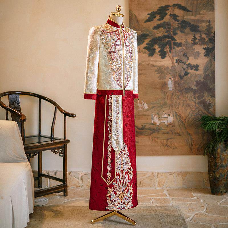 --------------------- 2025新款手工刺绣礼服新郎结婚唐装中式婚礼男士大码婚服敬酒服 【原售价】393.6元 【现售价】393.6元 【推荐理由】