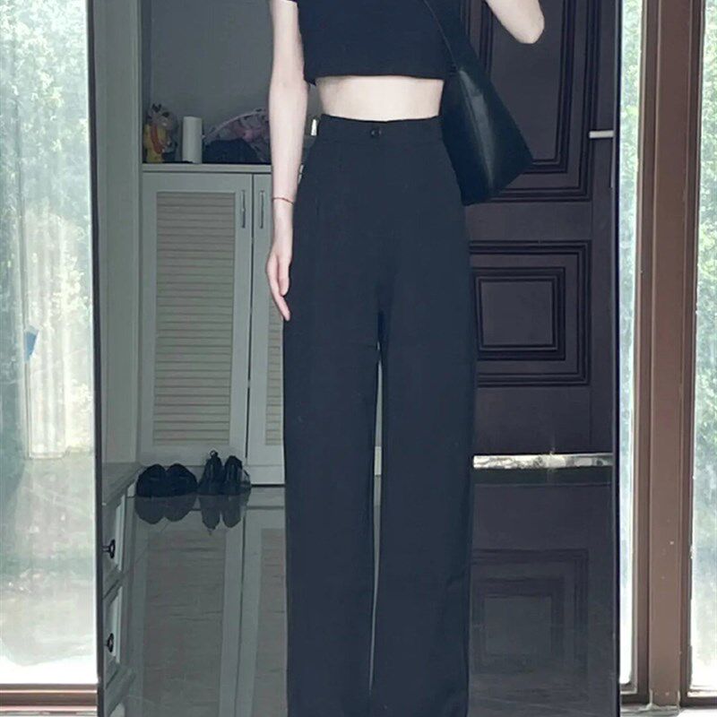 黑色坠感直筒西装裤大码女高腰显瘦百搭夏天胖妹妹休闲宰版阔腿裤