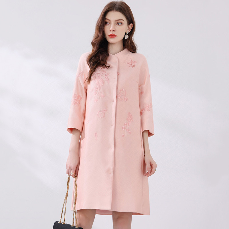 淘宝气质名媛高端风衣女春秋2025新款国风复古刺绣宽松大码新中式外套