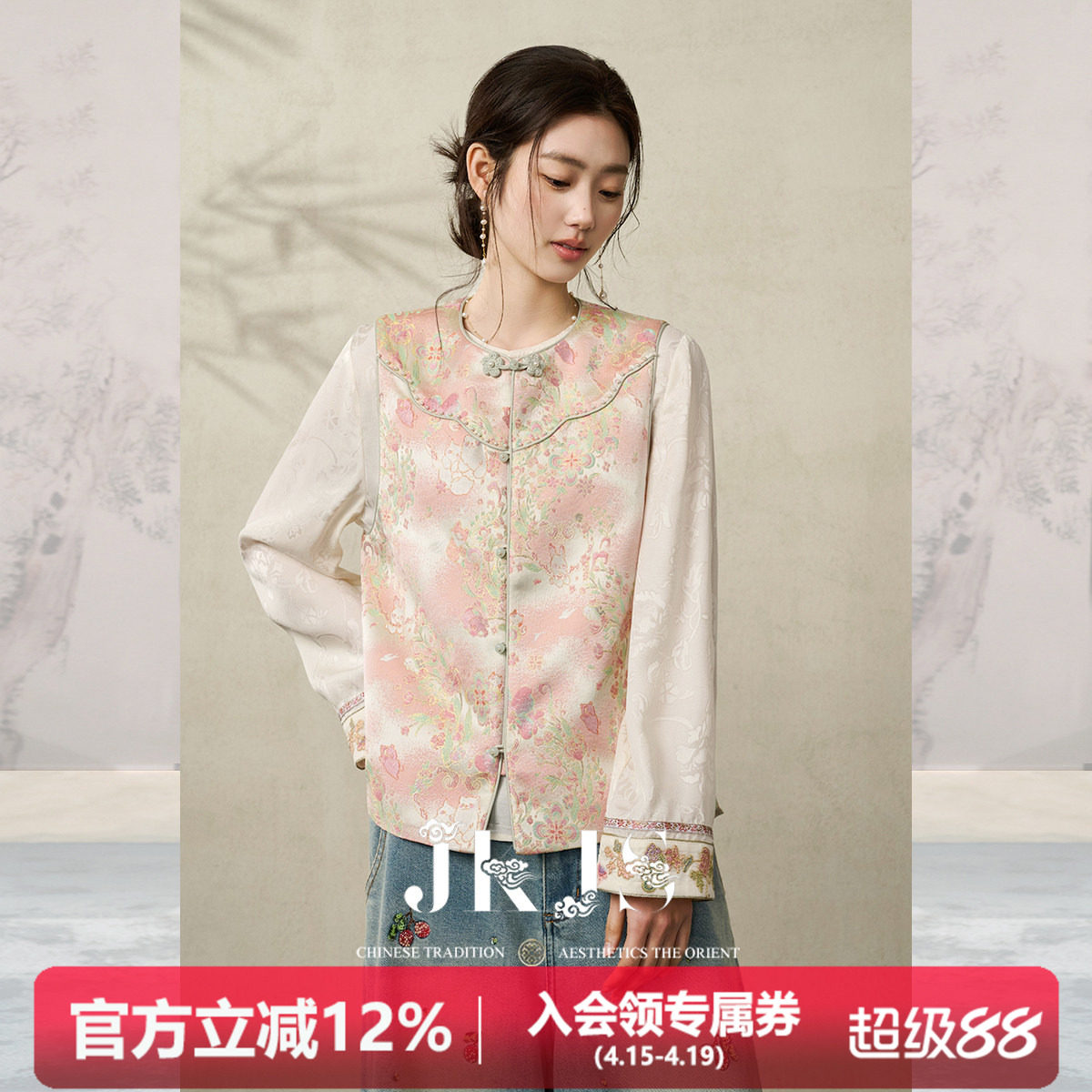 --------------------- JKJS【春日宴】新中式马甲女款小个子外穿叠穿中式中国风女装马夹 【原售价】439元 【现售价】333元 【推荐理由】