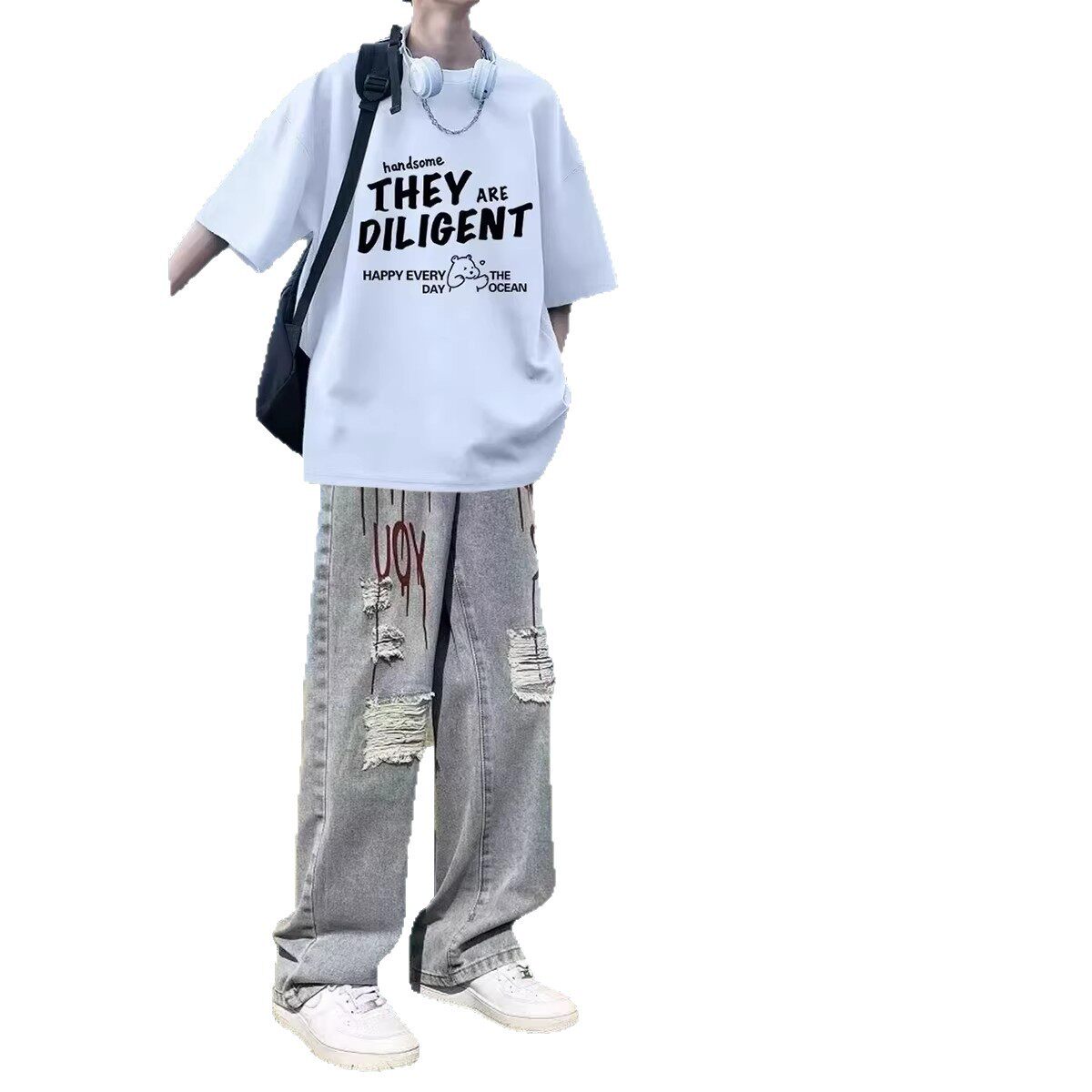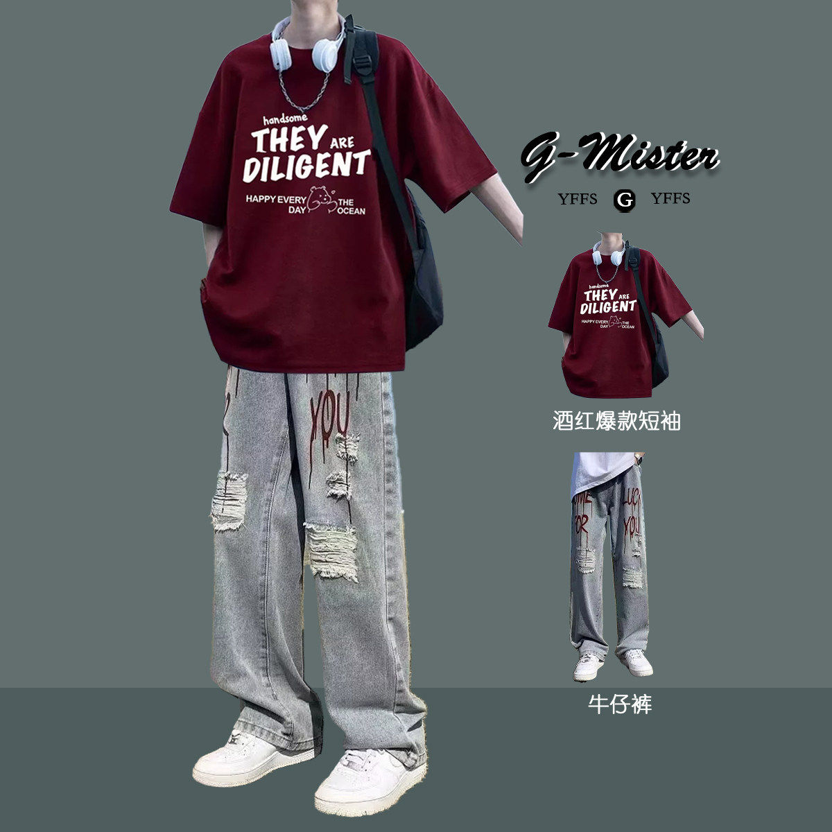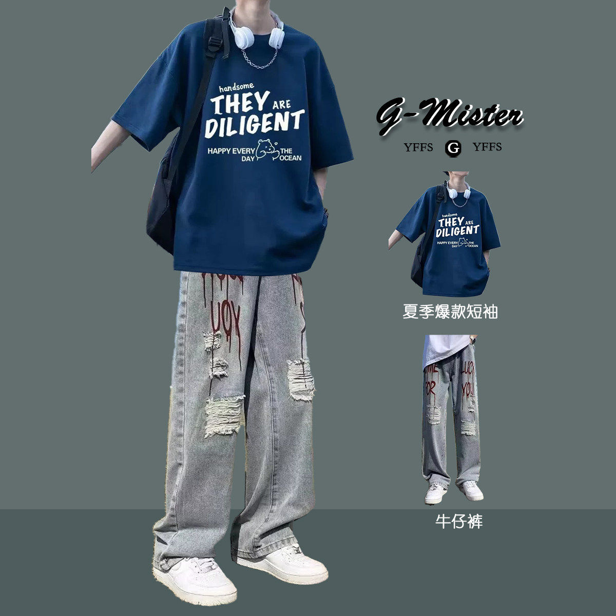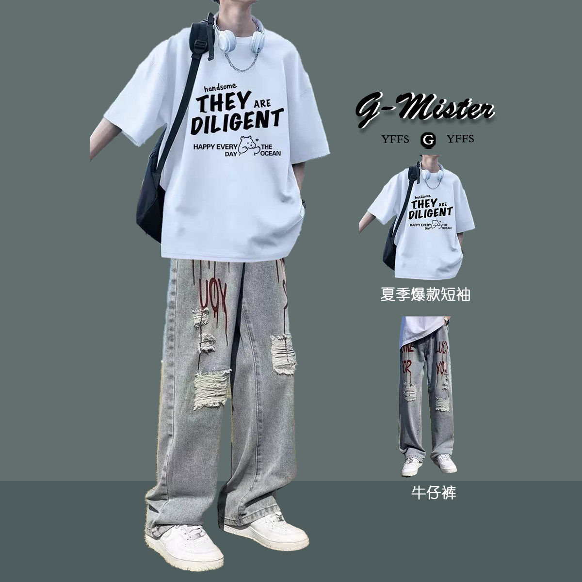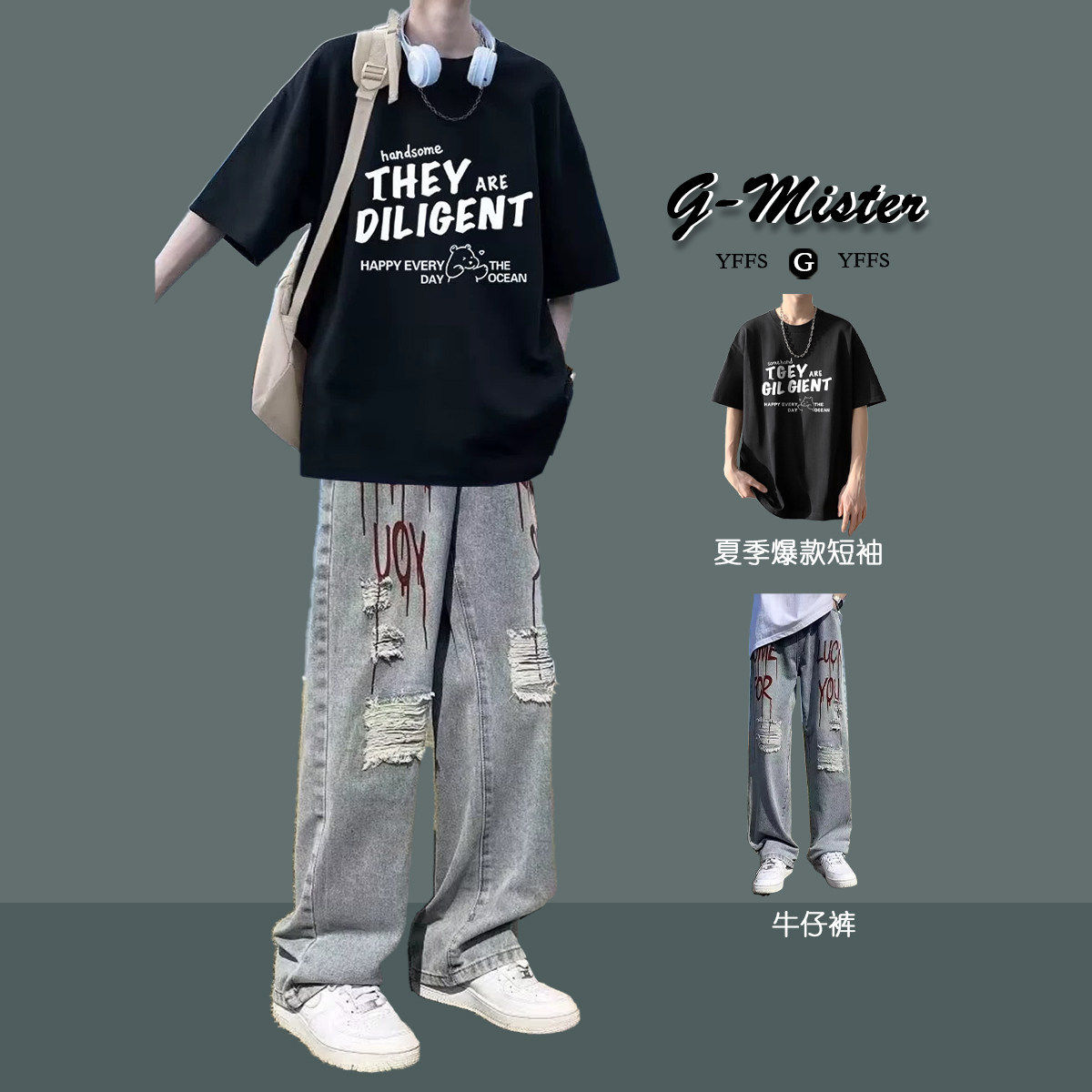 --------------------- BENTIDEA 夏季青少年高街酷帅套装印花短袖T恤痞帅气穿搭牛仔裤 【原售价】160元 【现售价】88元 【推荐理由】
