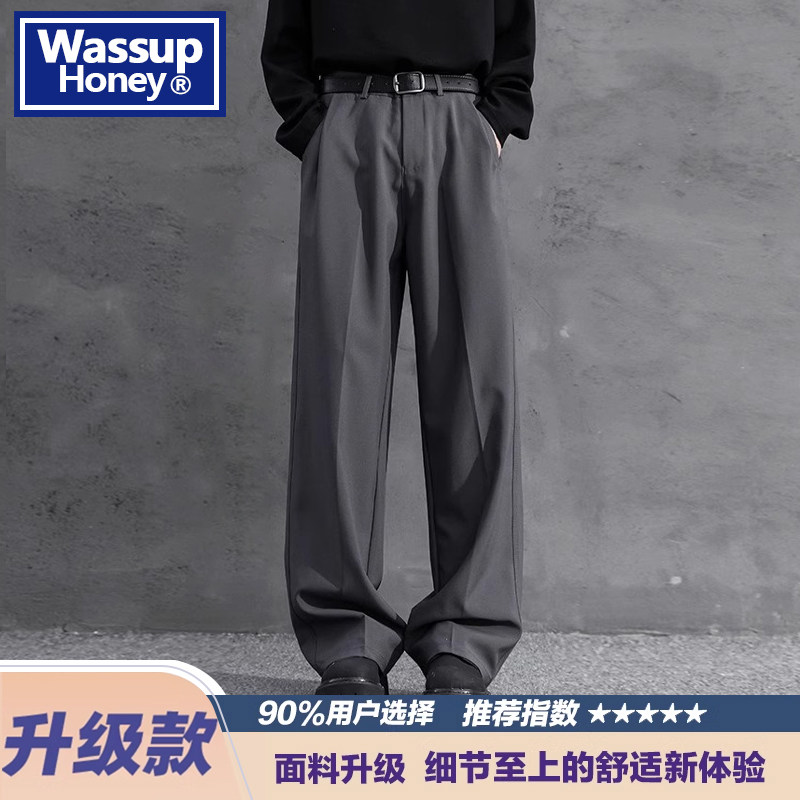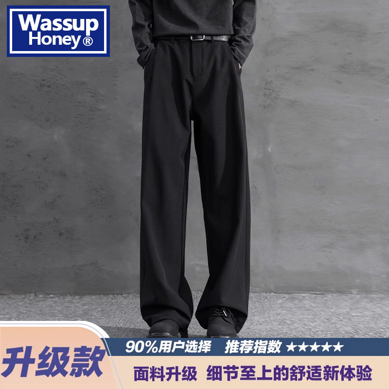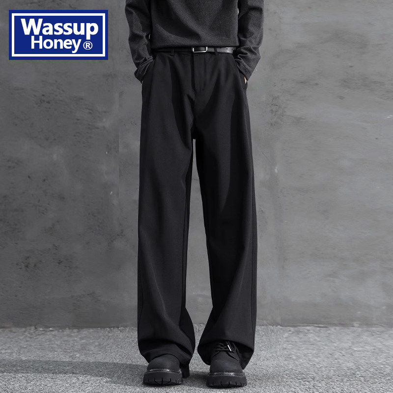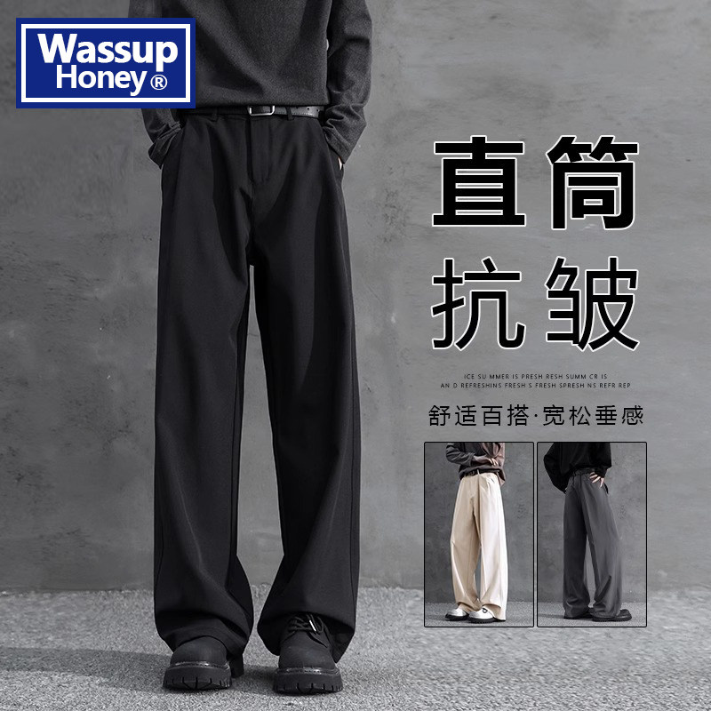 淘宝WASSUP Honey直筒垂感西装裤子男士春秋新款休闲裤男款宽松长裤子